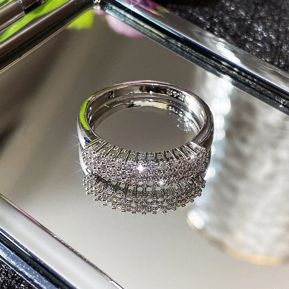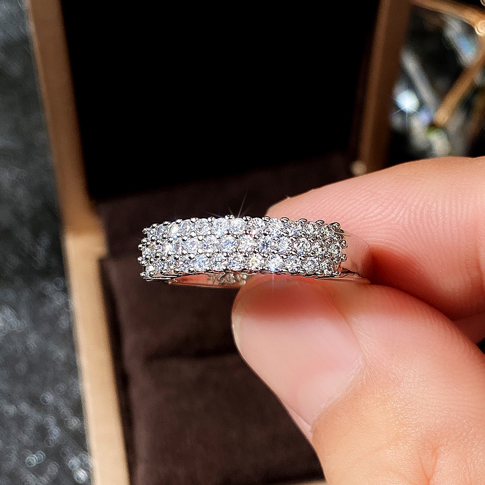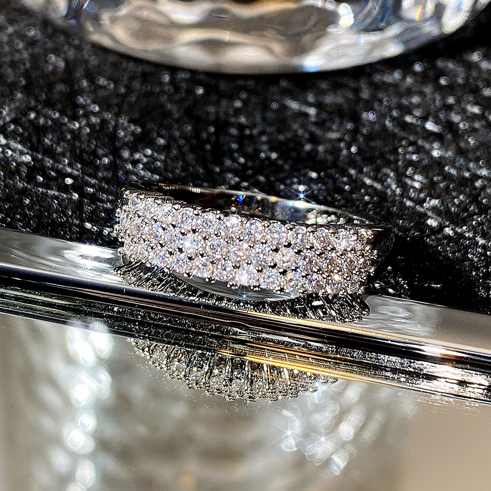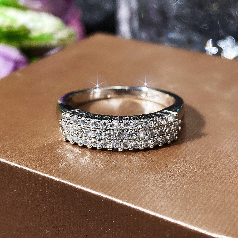 Hot selling jewelry simple pavé three-row zircon ring new fashion ring hand jewelry wholesale