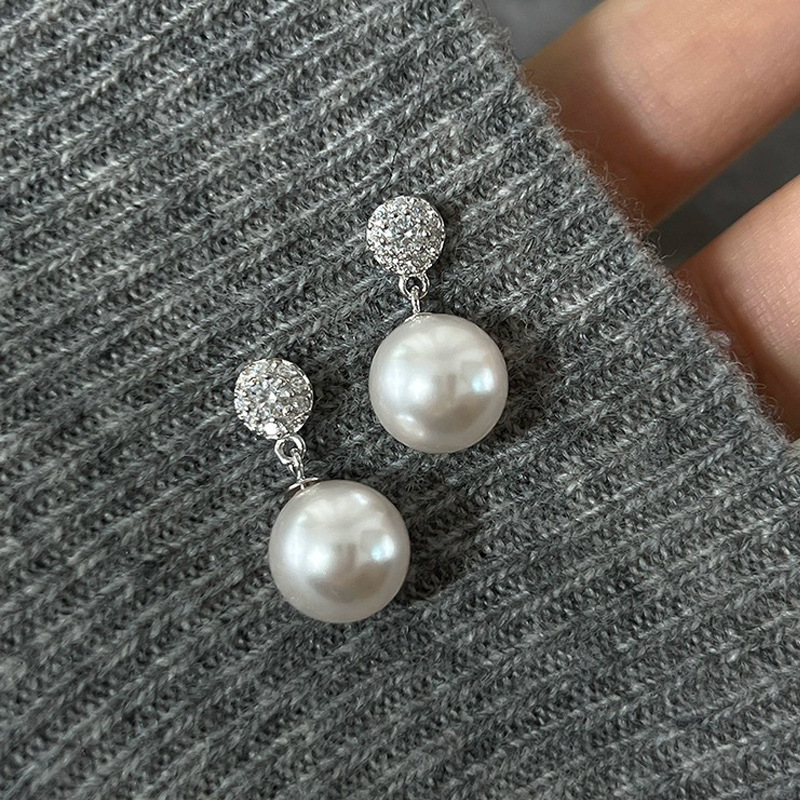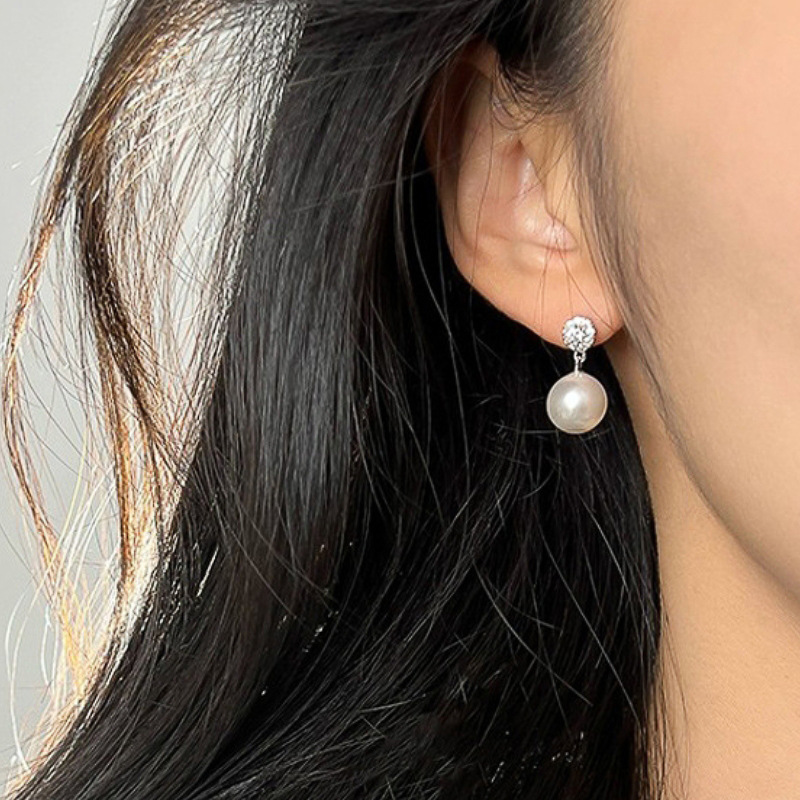Hot selling ladies electroplated imitation pearl earrings light luxury style geometric round earrings elegant and exquisite style