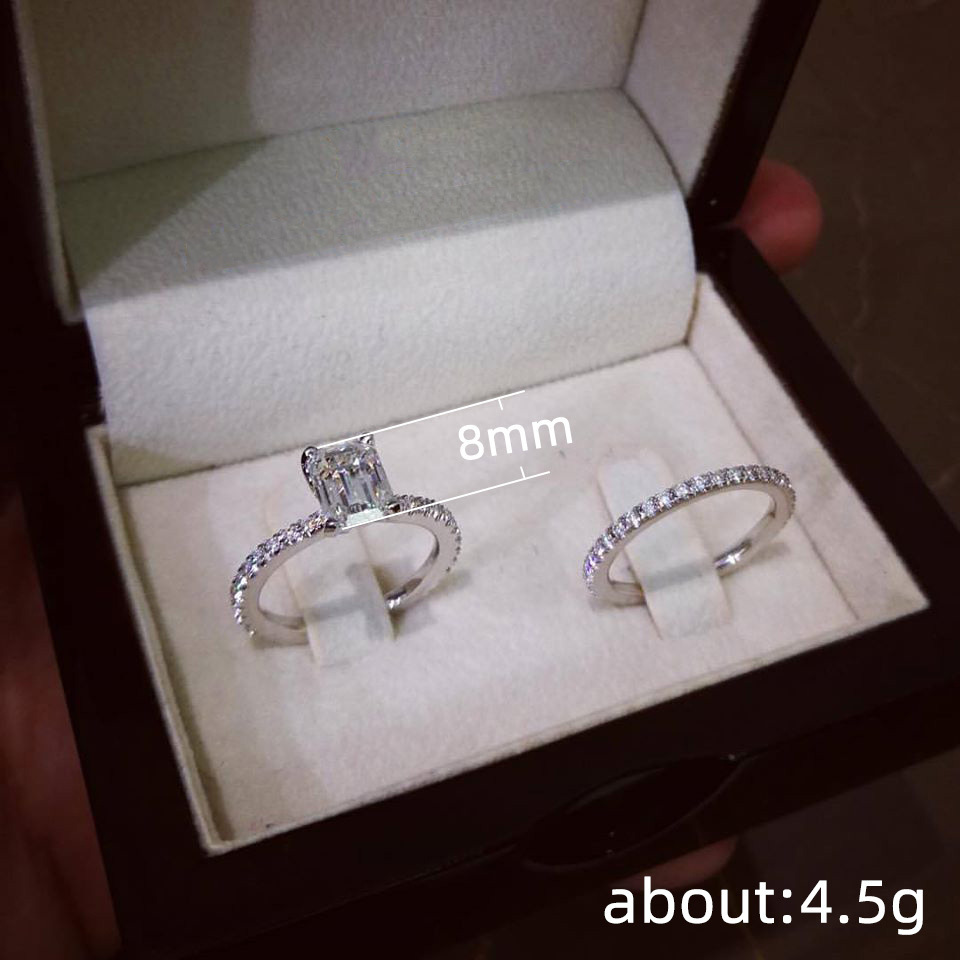 Hot selling new princess square ring European and American hot style inlaid zircon women's jewelry engagement proposal ring