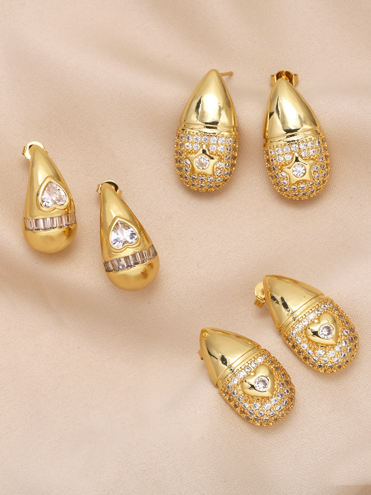 Hot selling love earrings versatile inlaid zircon gold-plated star water drop earrings earrings erv58