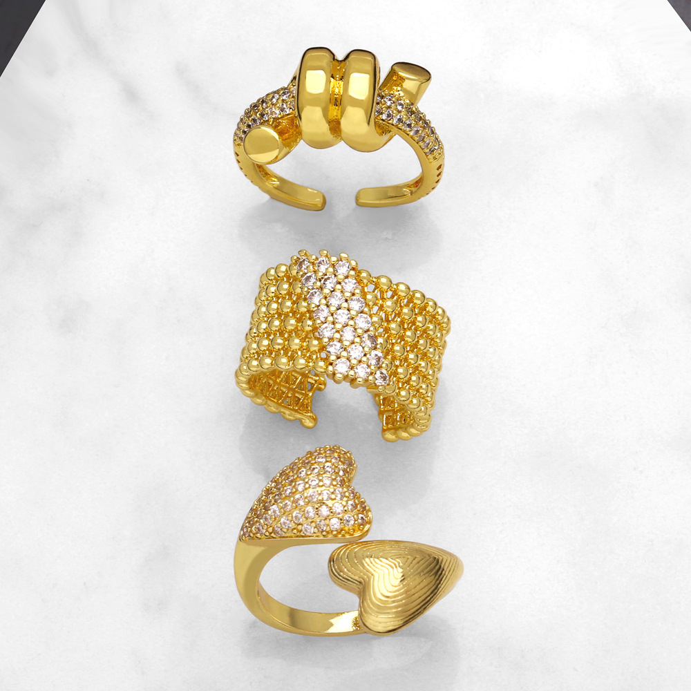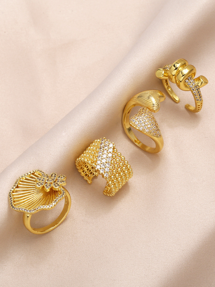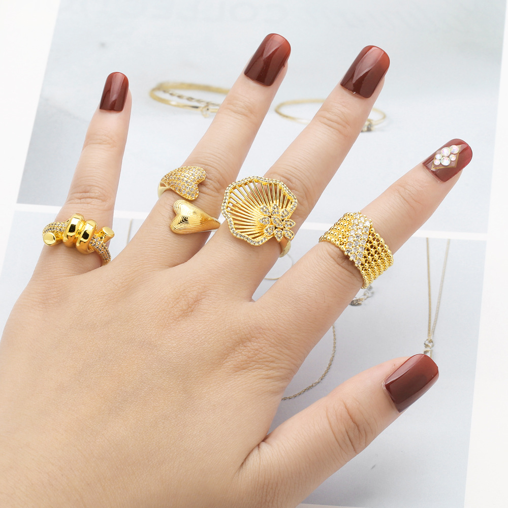 Hot selling love inlaid zircon ring female gold-plated lotus adjustable open ring rip32
