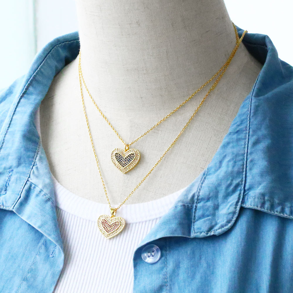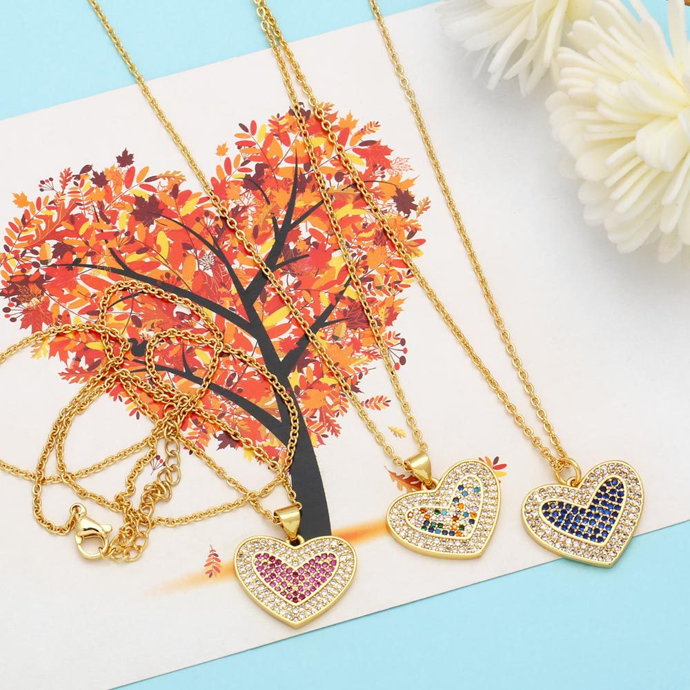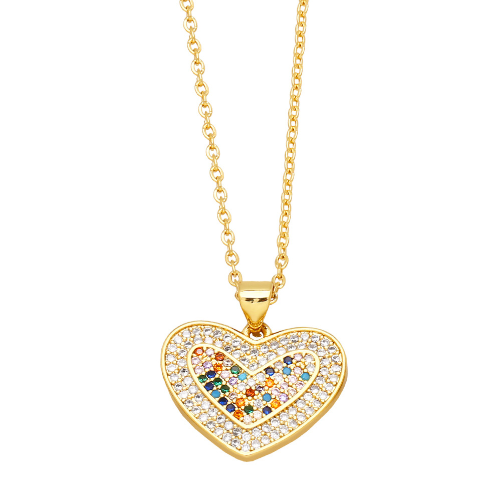 Hot selling love necklace female European and American fashion simple full diamond heart pendant peach heart clavicle chain nkb716