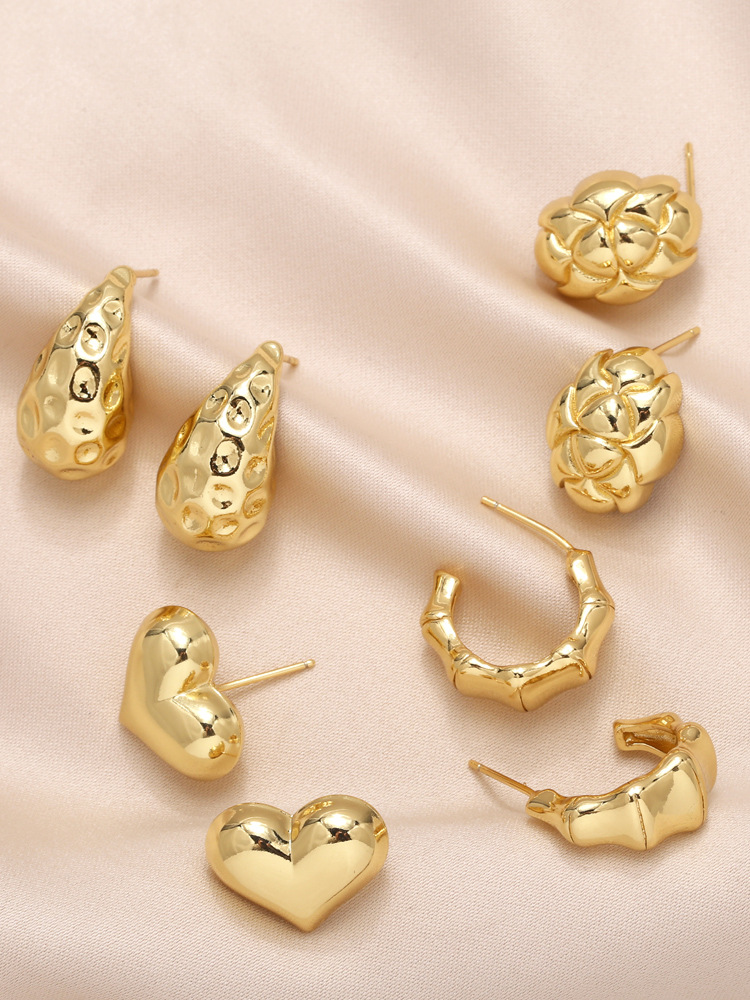 Hot selling love teardrop earrings personality versatile copper plated 18k gold earrings wholesale eru02