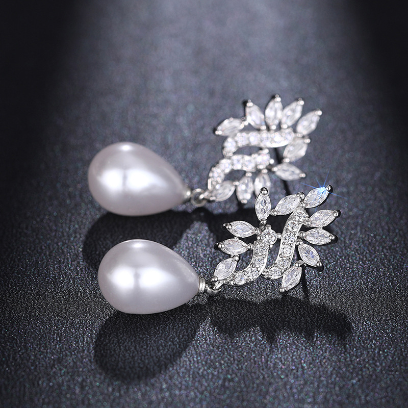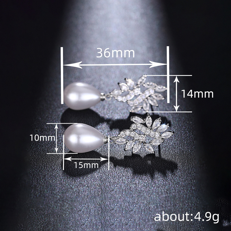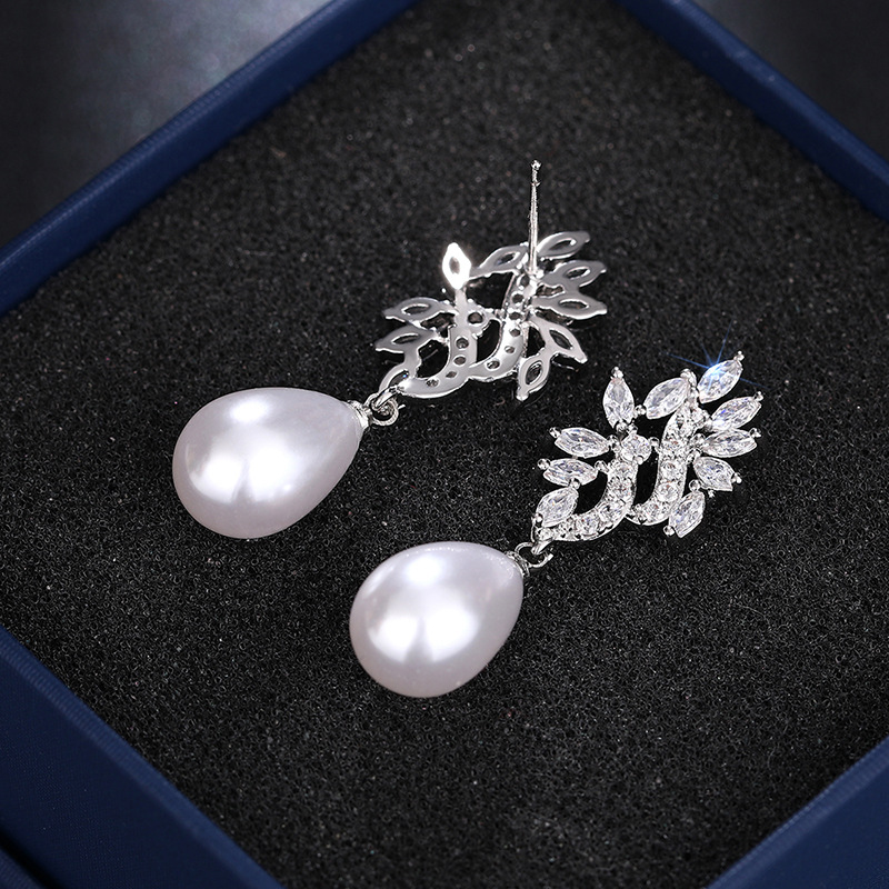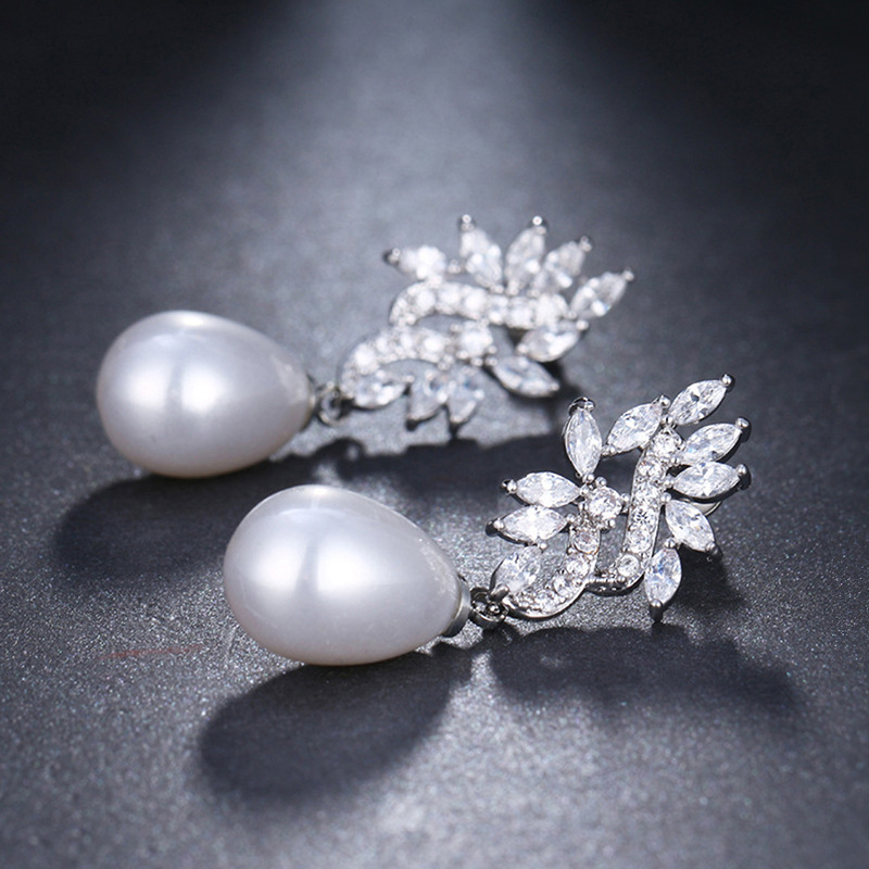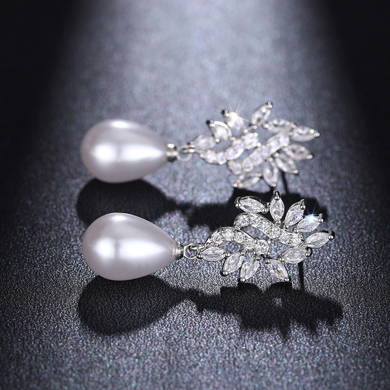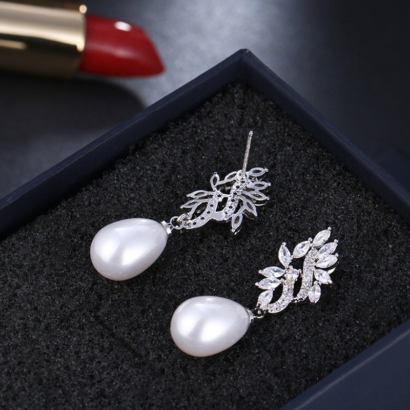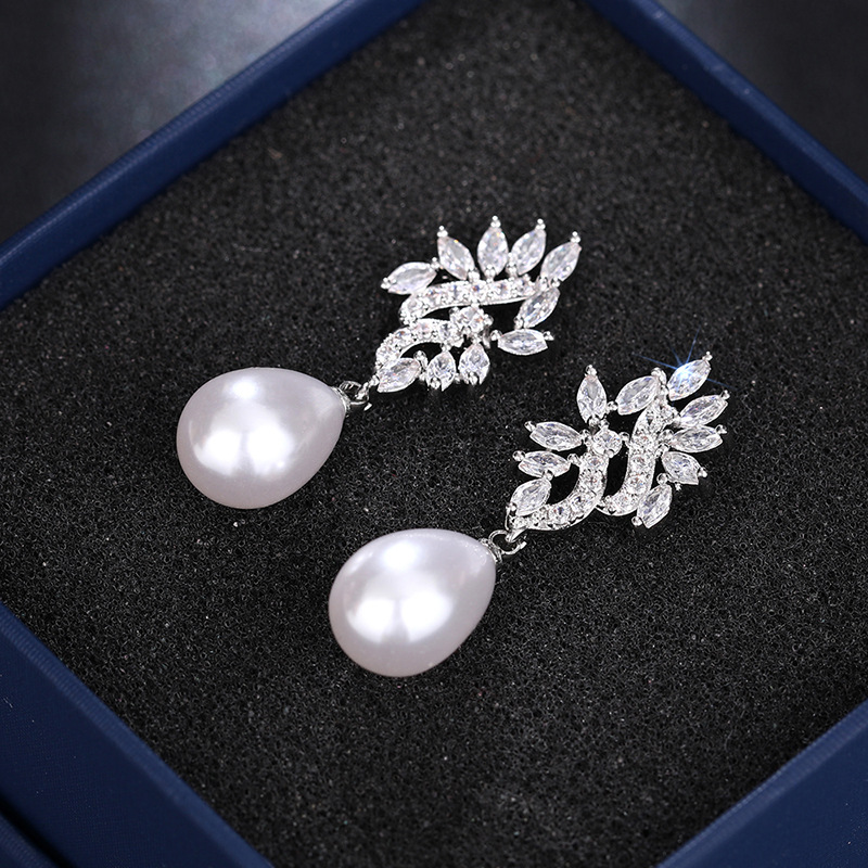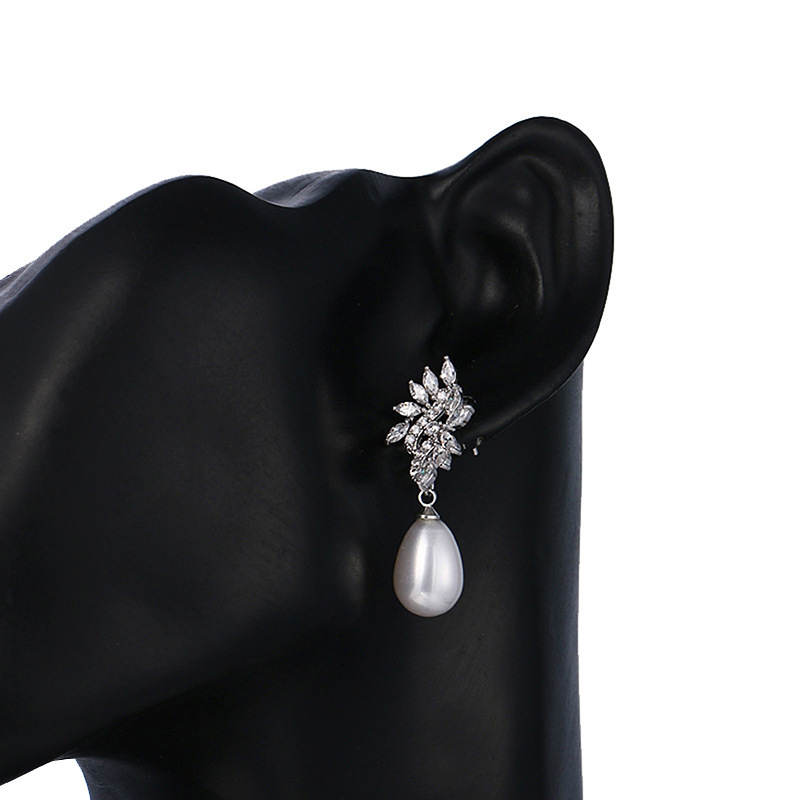 Hot-selling luxurious imitation pearl earrings, fashionable teardrop-shaped jewelry, micro-inlaid zircon high-end earrings