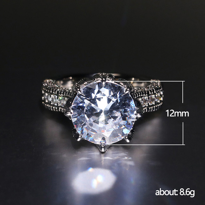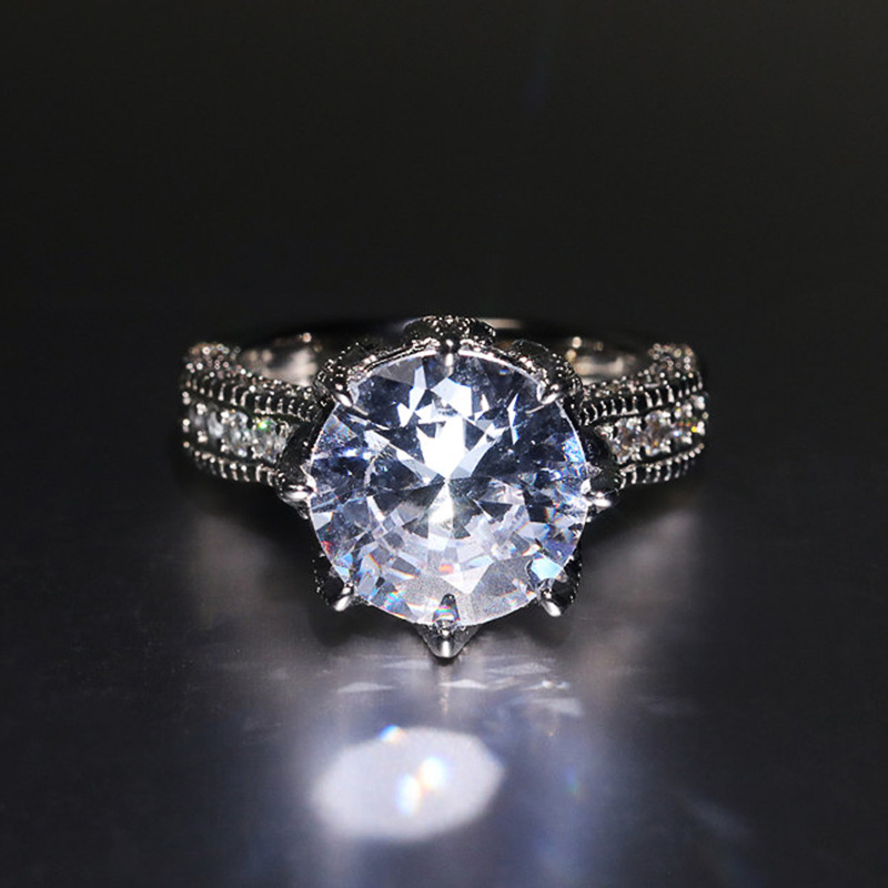 Micro-inlaid celebrity style classic all-match popular ring six-claw zircon wedding ring European and American style light luxury ring