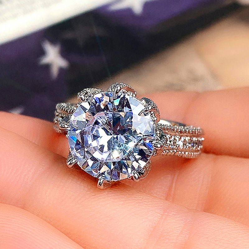 Hot-selling luxury wedding rings, oversized sparkling zircon engagement rings, European and American fashion proposal rings
