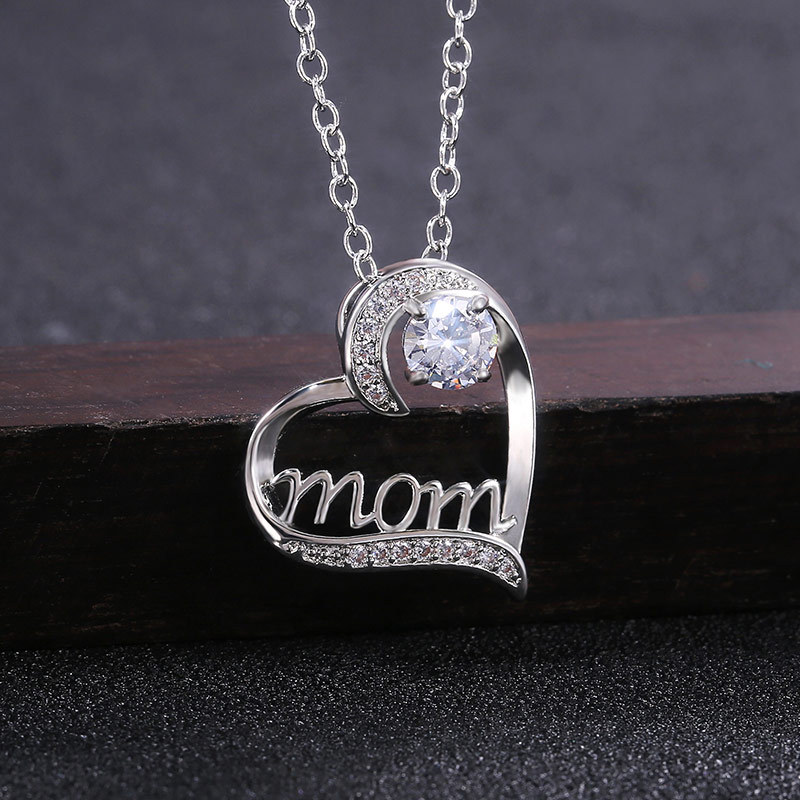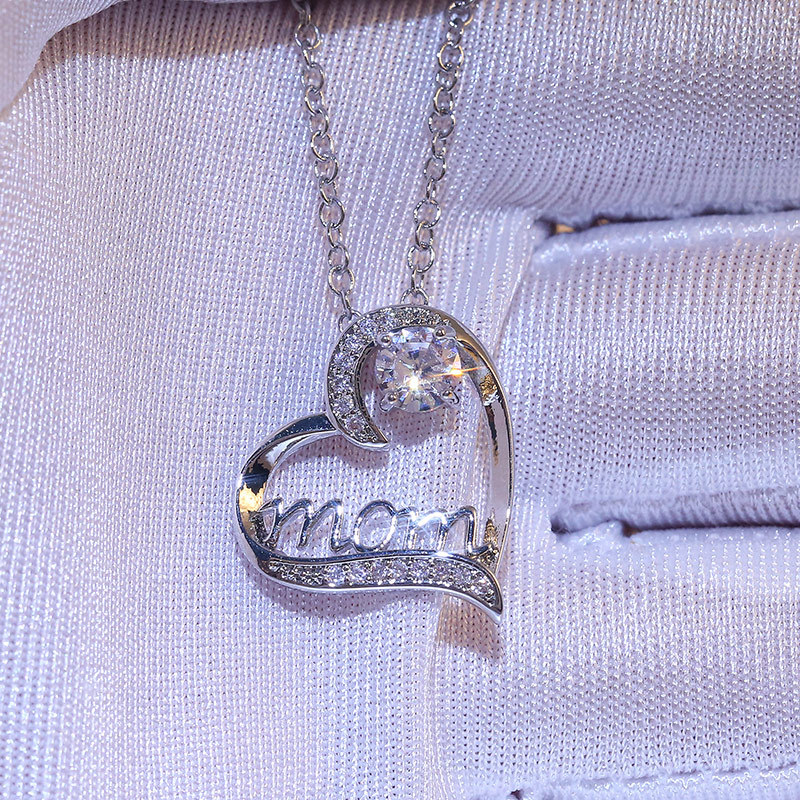 Hot selling MOM heart-shaped claw-set zircon necklace in Dongdaemun, Korea, electroplated real gold mother's birthday gift