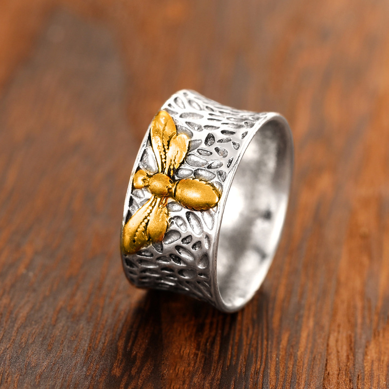Hot selling moth insect ring Yiwu hot selling creative jewelry European and American retro three-dimensional ring