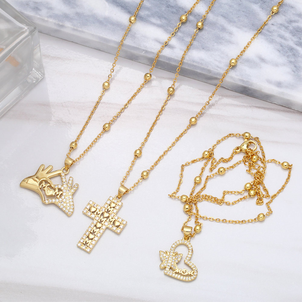 Hot selling Mother's Day jewelry in Europe and America, niche luxury choker letter MOM love cross necklace nkb038