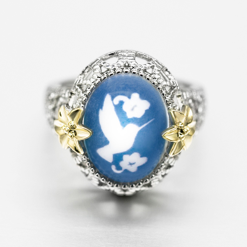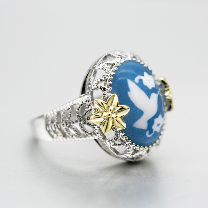 Hot-selling Nano Reflection Bird Ring Copper Plated Color Separation Small Flower Peace Dove Jewelry Wholesale