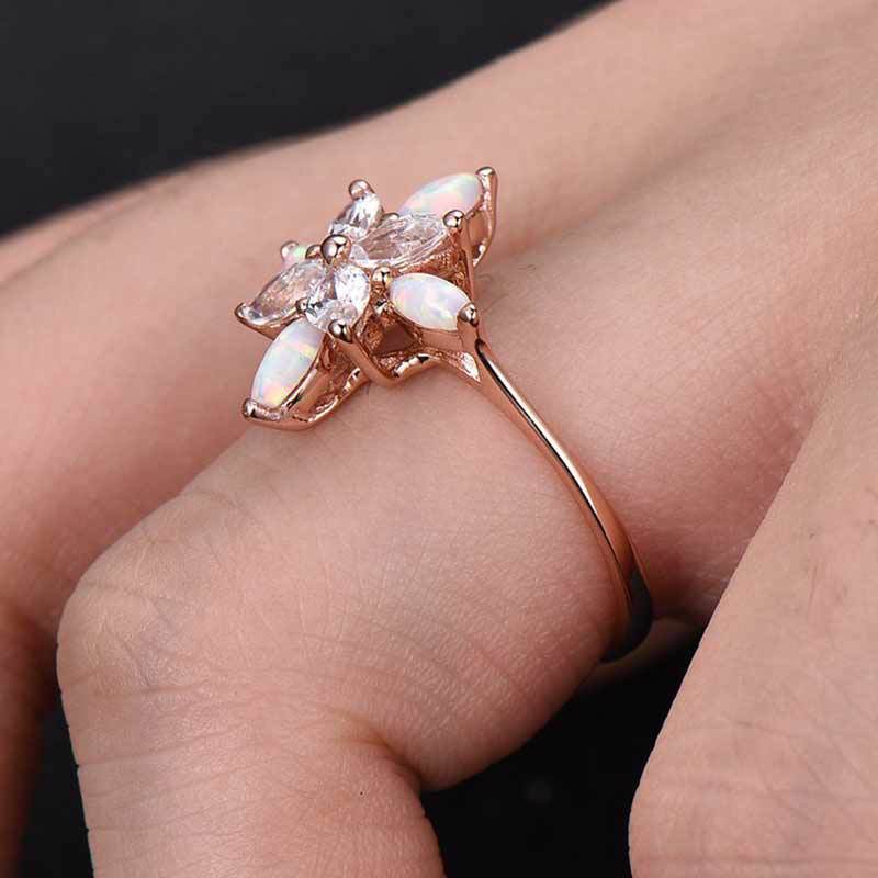 Hot selling new artificial opal flower ring European and American fashion hand jewelry opal women's ring
