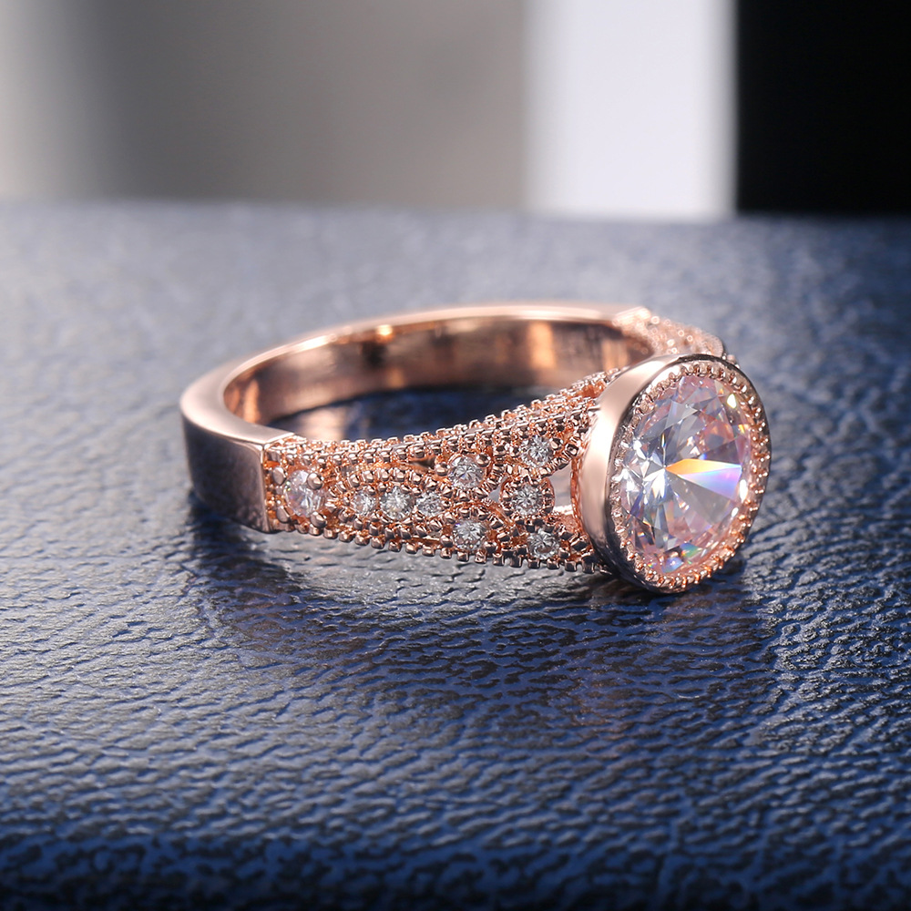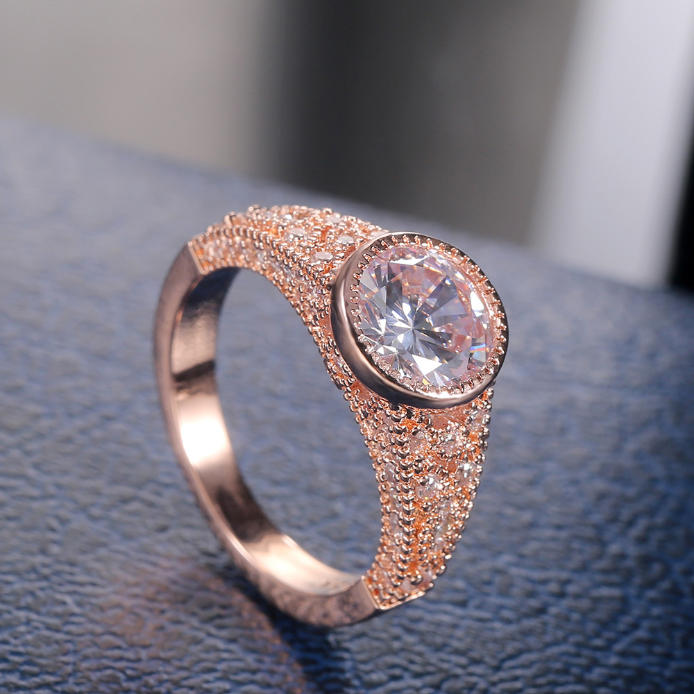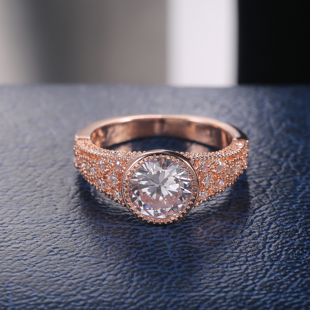 Hot selling new classic rose gold large zircon imitation diamond ring female ring jewelry accessories