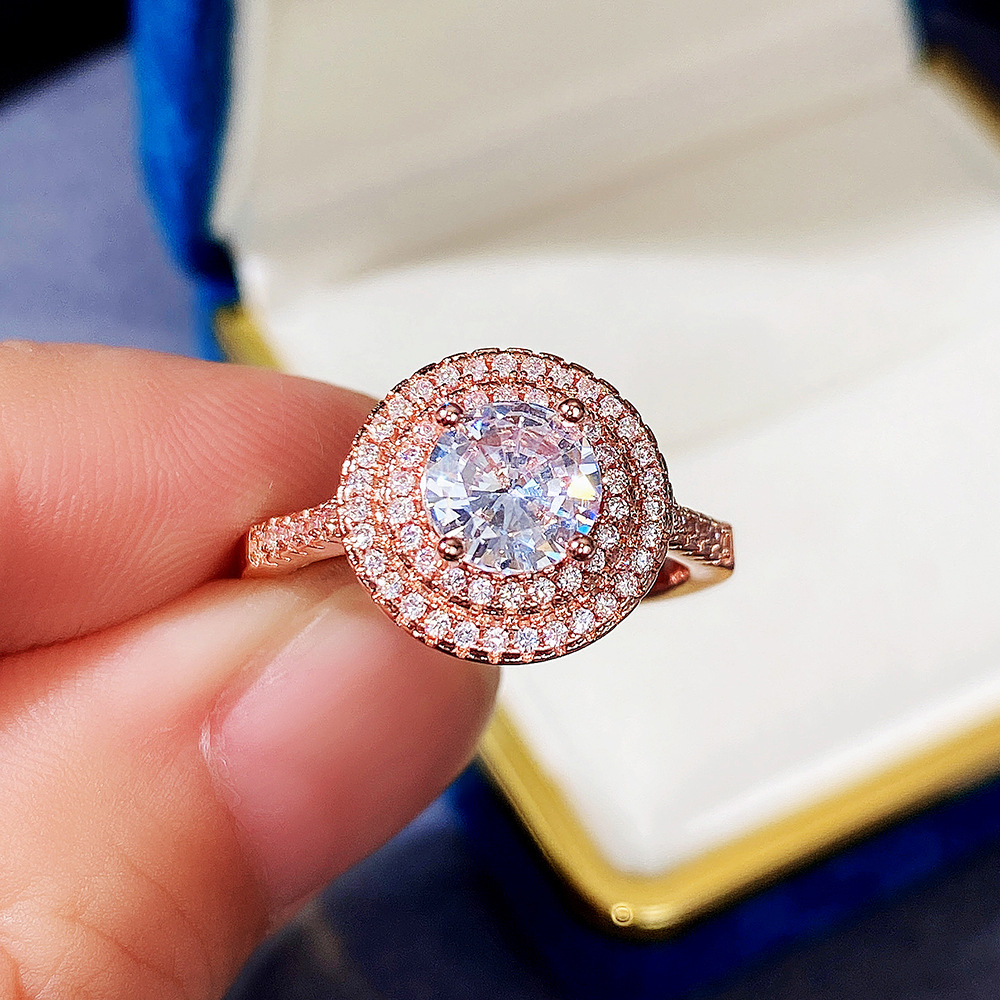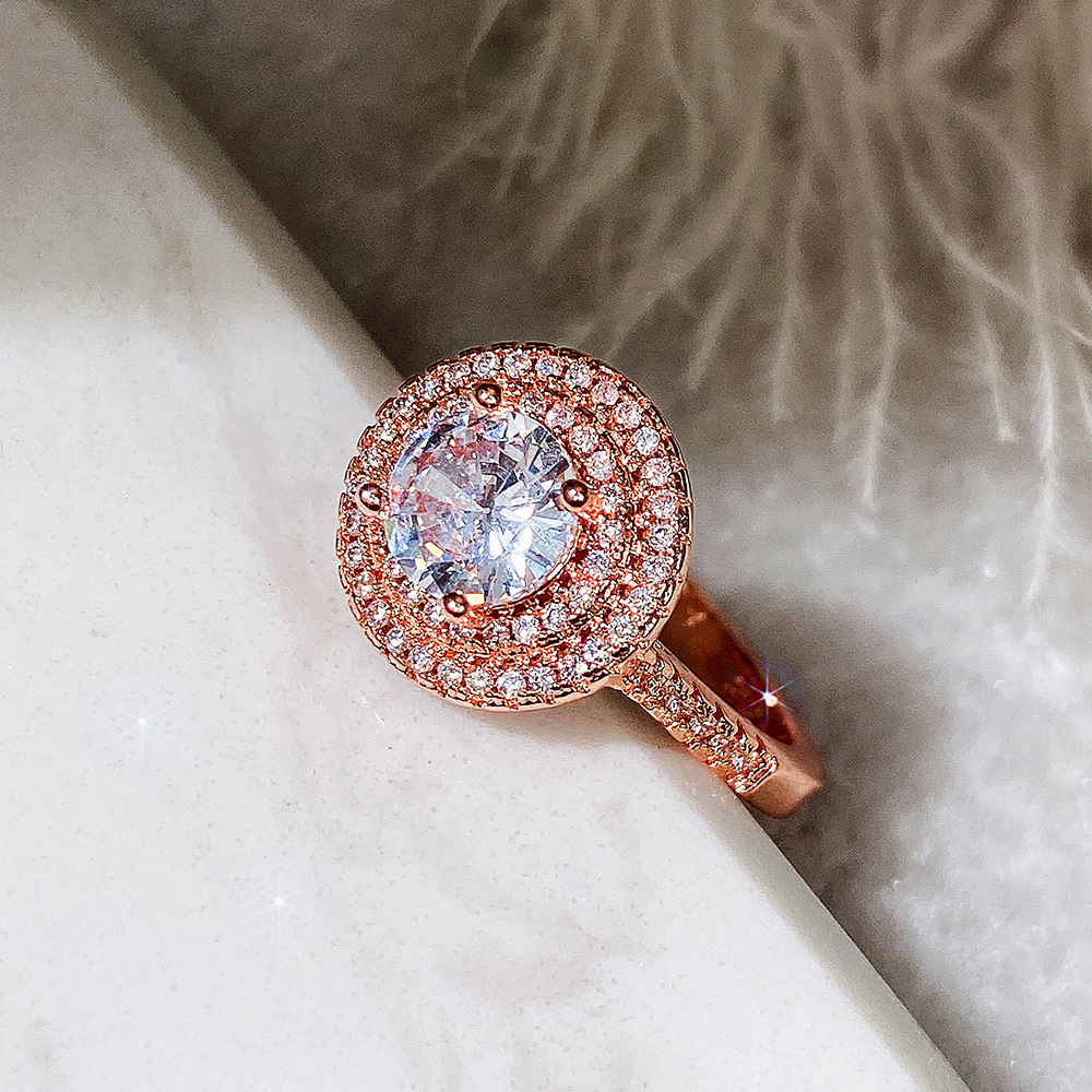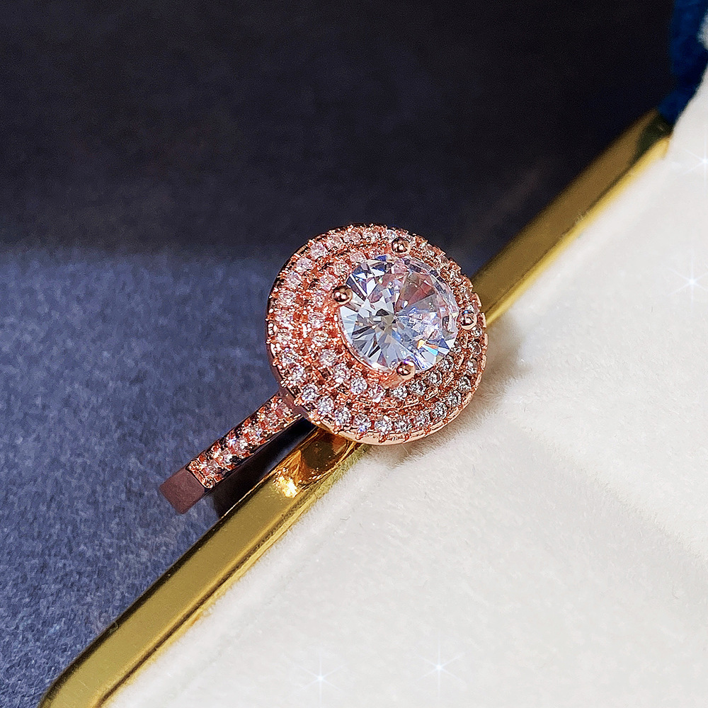 Hot selling new copper rose gold plated zircon engagement ring European and American women's popular jewelry wholesale