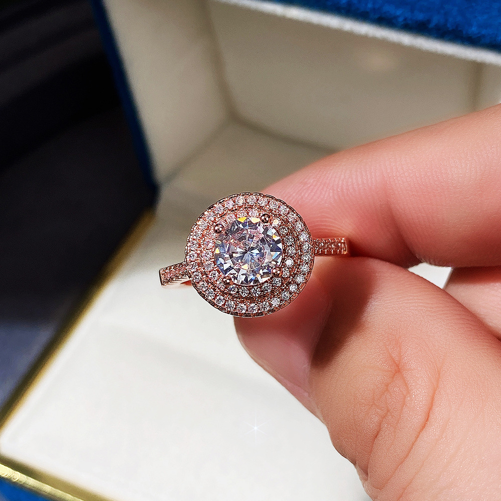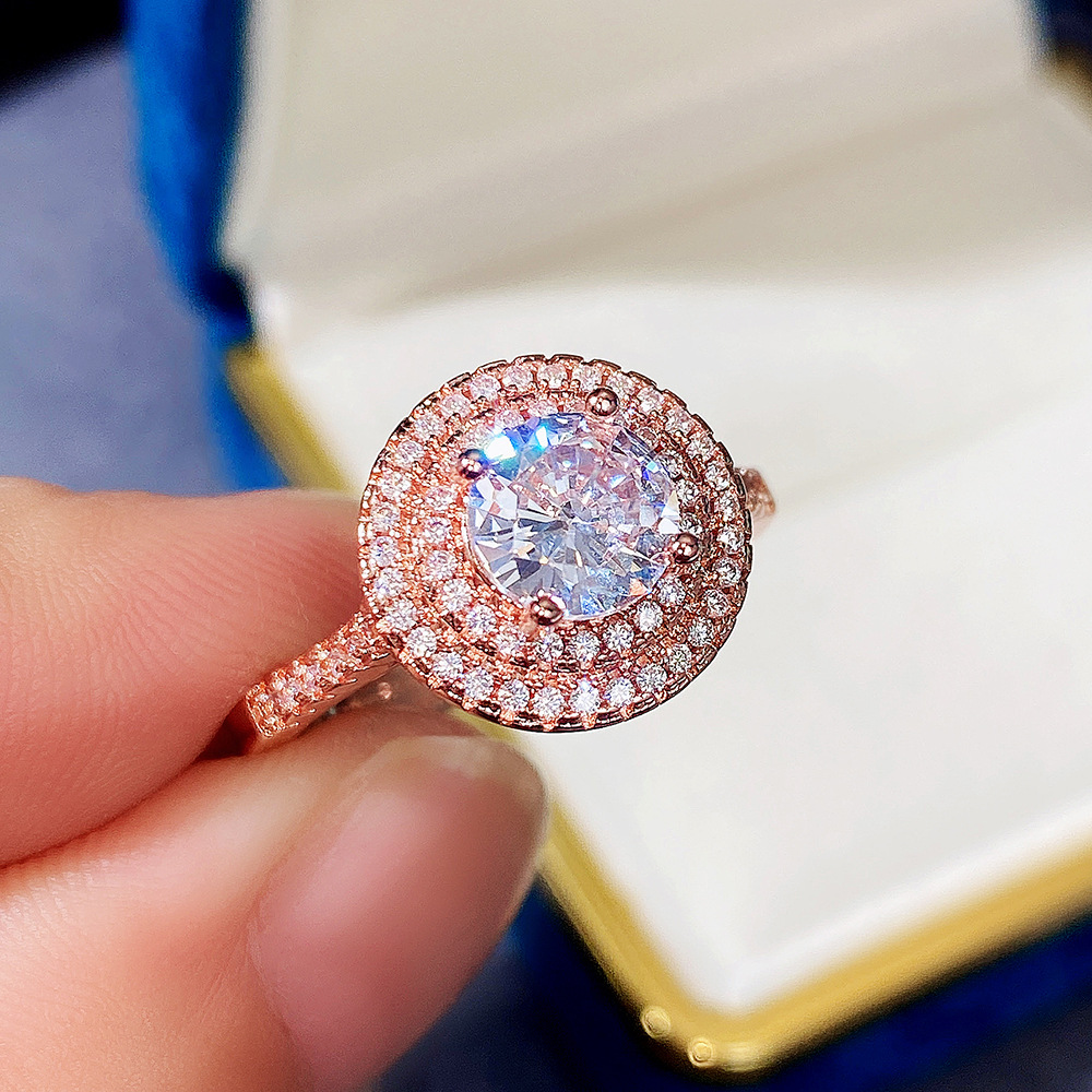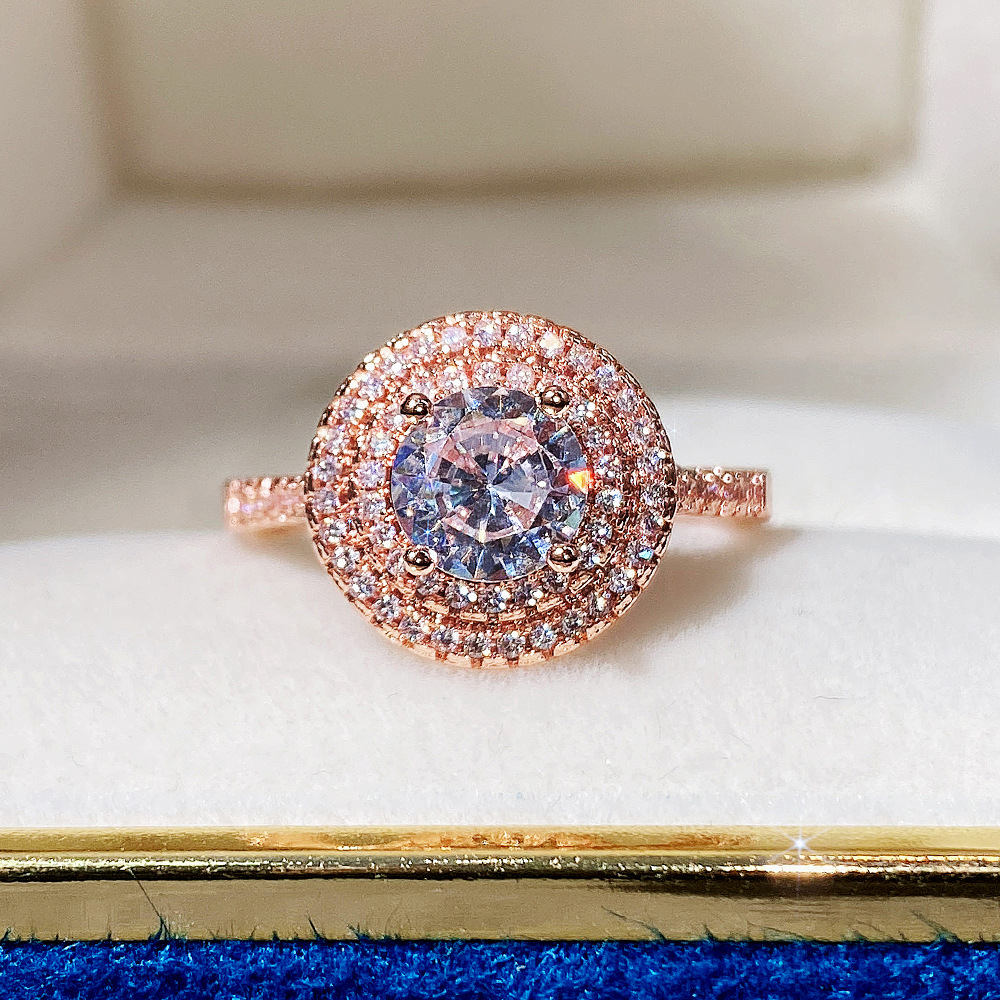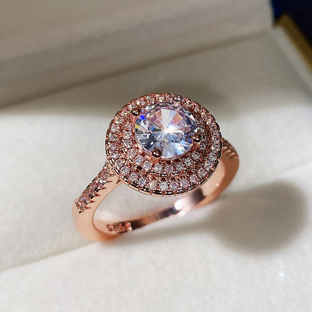 Hot selling new copper rose gold plated zircon engagement ring European and American women's popular jewelry wholesale