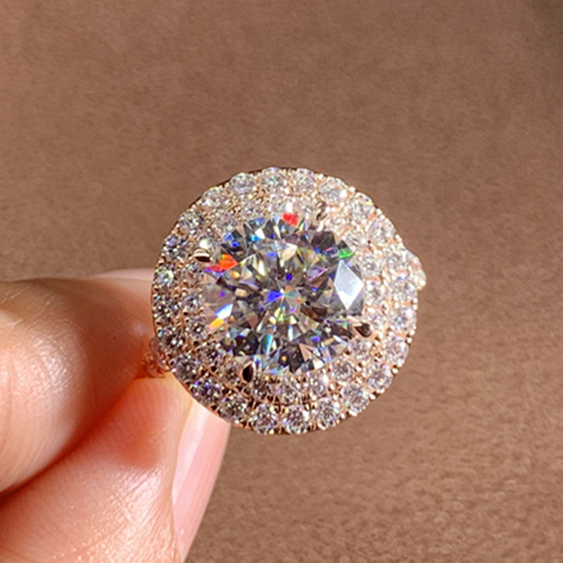 Micro-inlaid celebrity style classic all-match popular ring six-claw zircon wedding ring European and American style light luxury ring