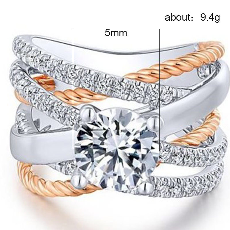 Classic four-claw imitation zircon micro-inlaid ring women's double row two-color twist arm ring engagement wedding ring women