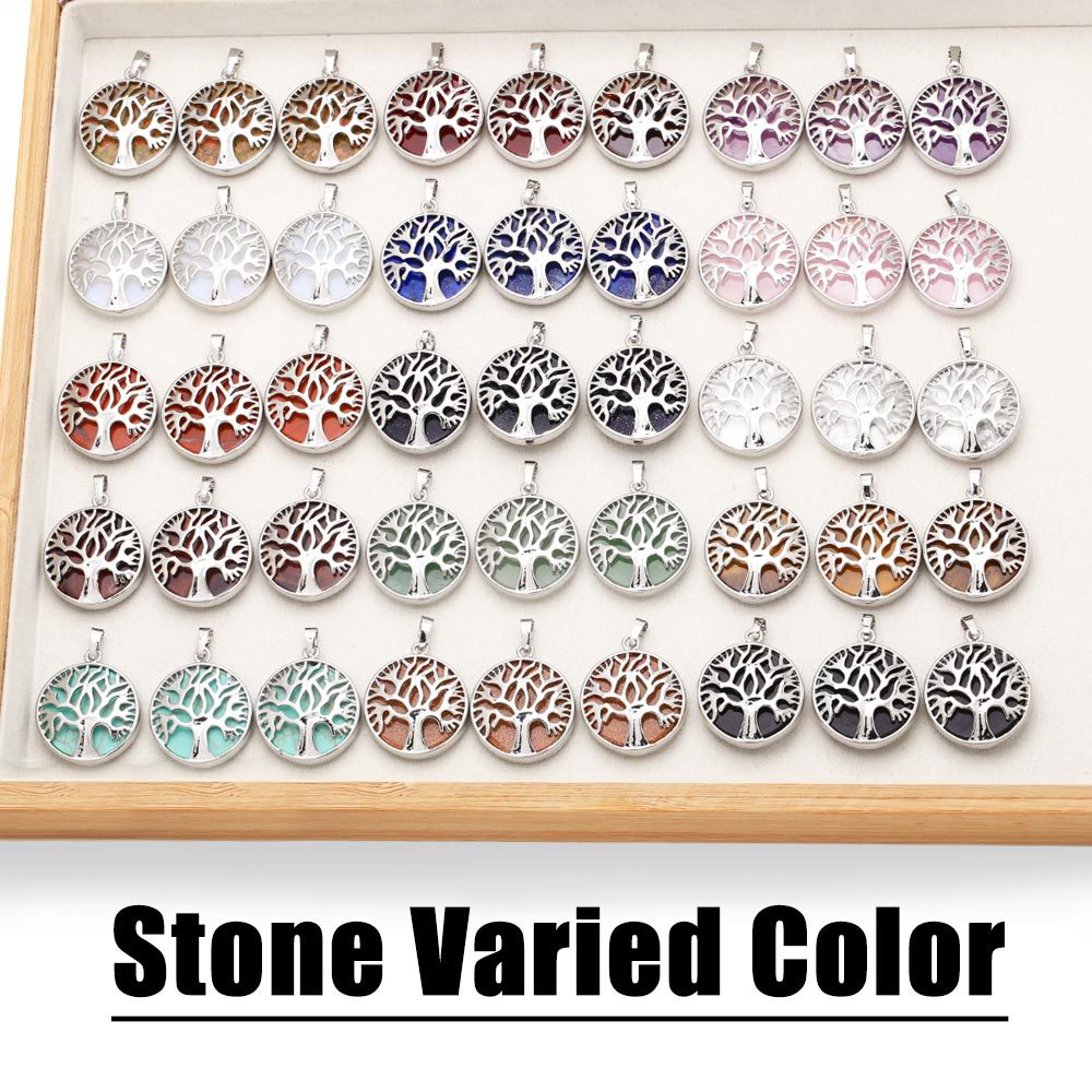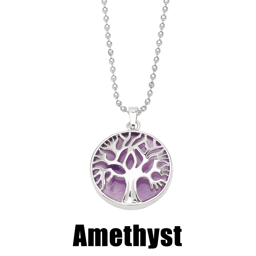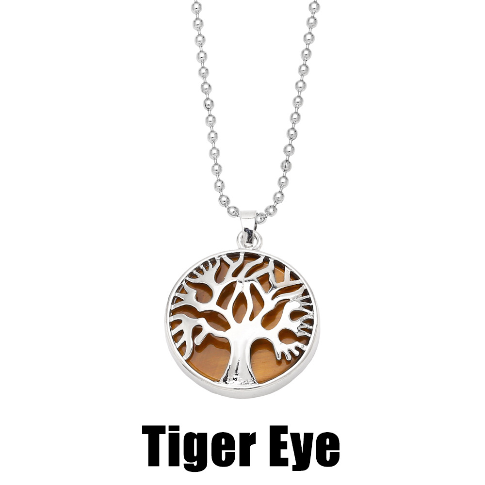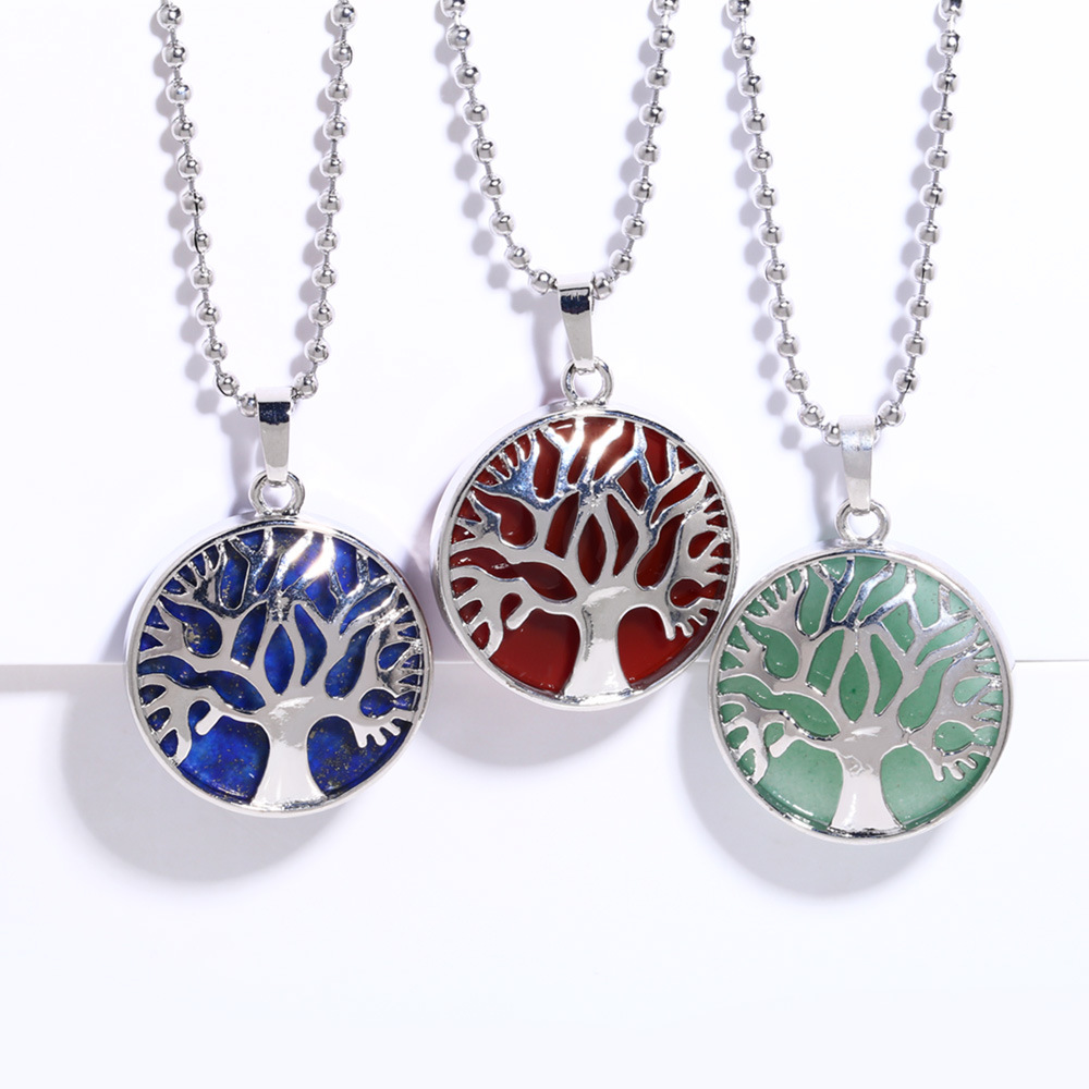 Hot selling new crystal agate tree of life necklace retro round hollow tree of life pendant nkb633
