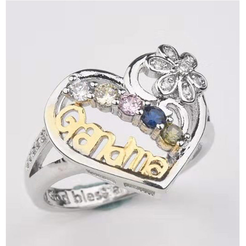 Hot selling new diamond grandma ring heart shaped color ring Mother's Day
