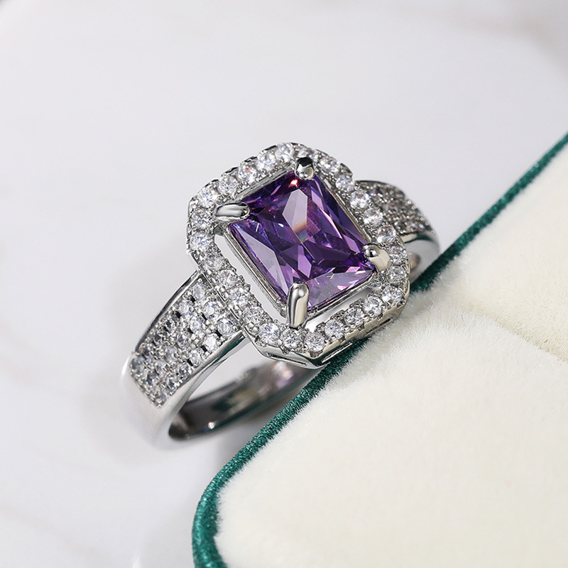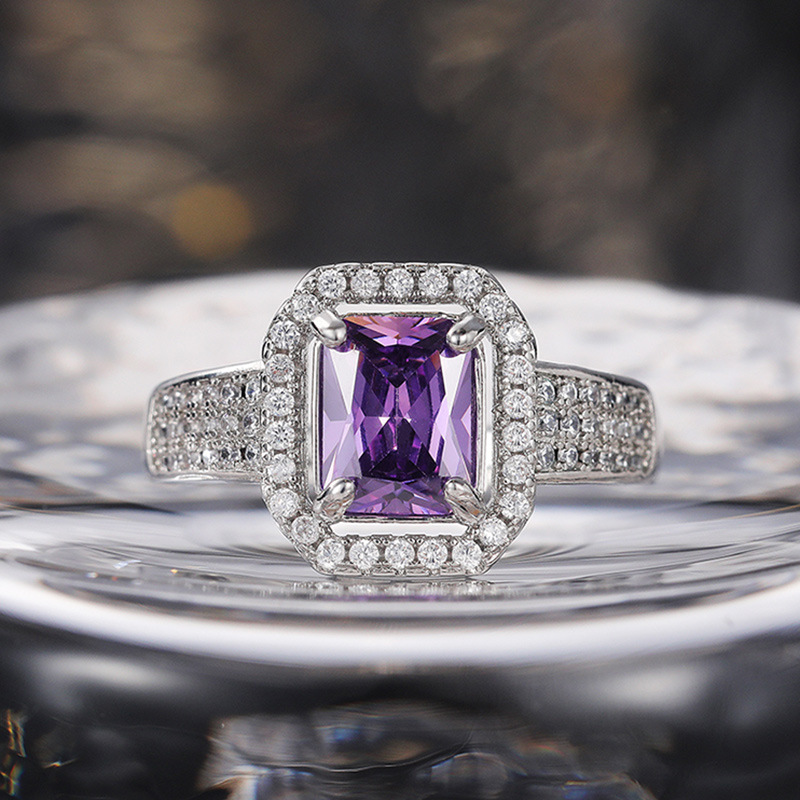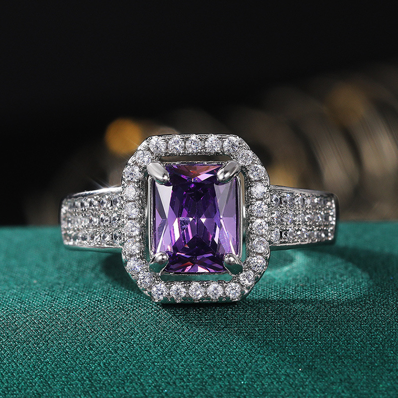 Hot selling new double-layer claw-set square zircon ring European and American inlaid topaz purple diamond ring