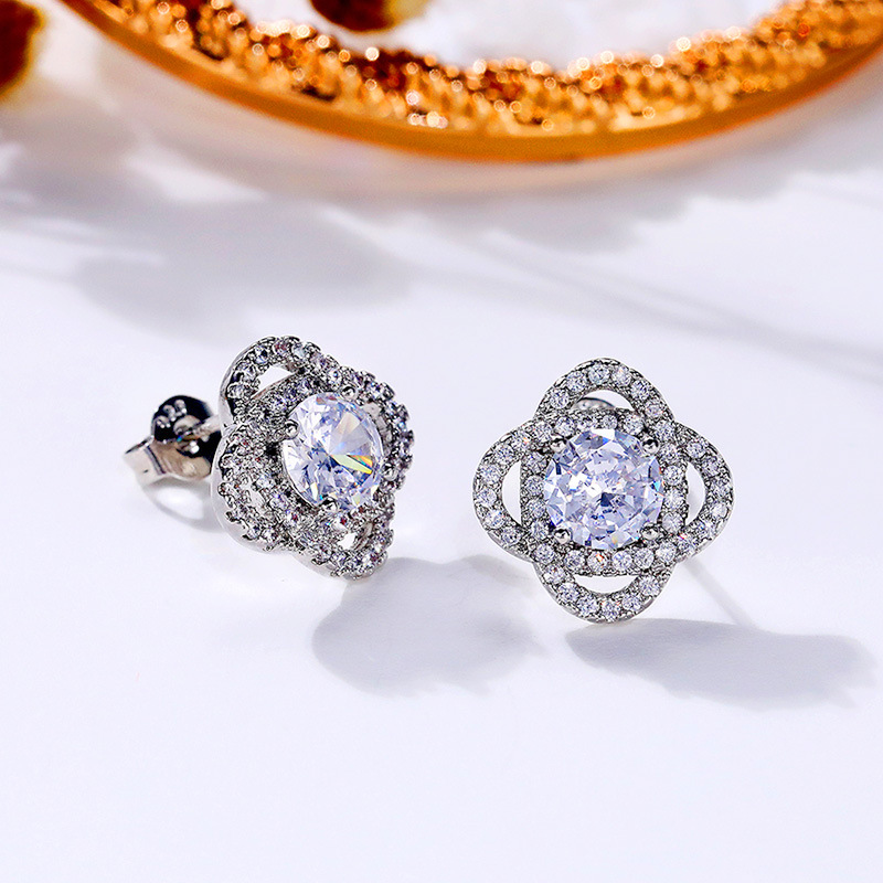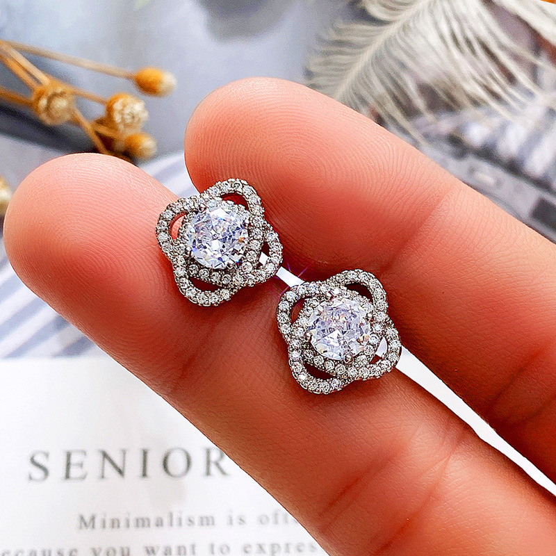 Hot selling new earrings creative rotating flower full diamond earrings European and American fashion engagement earrings for women