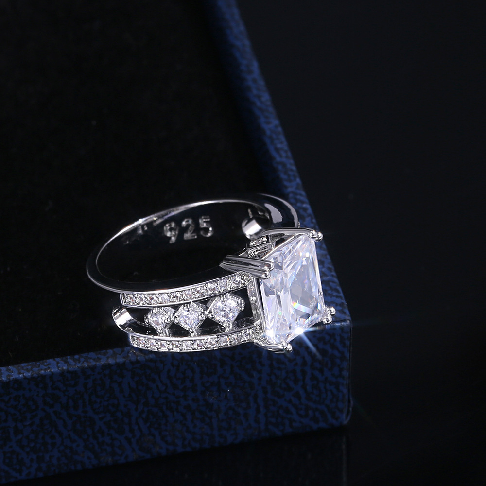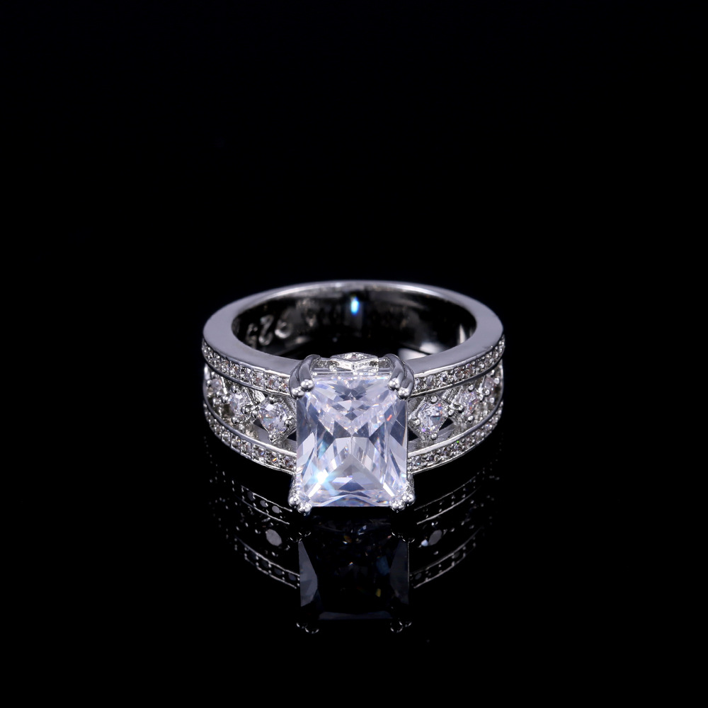 Hot selling new princess square ring European and American hot style inlaid zircon women's jewelry engagement proposal ring