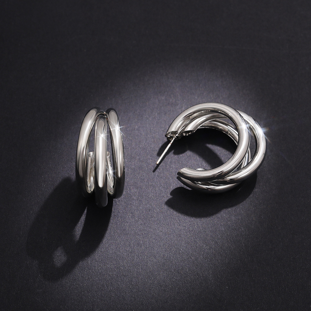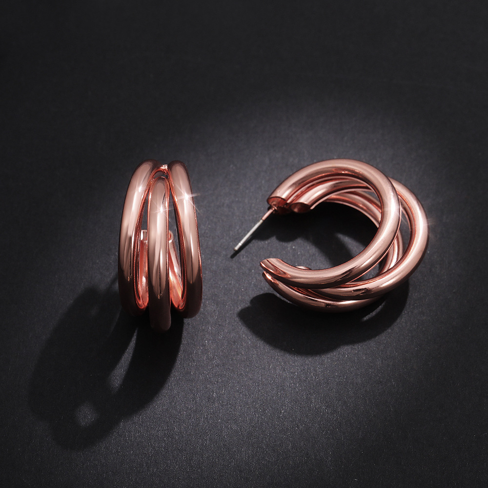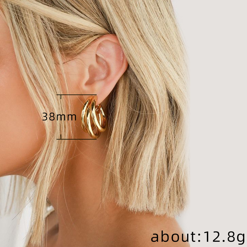 Hot selling new European and American fashion metal multi-layer geometric shape earrings for women