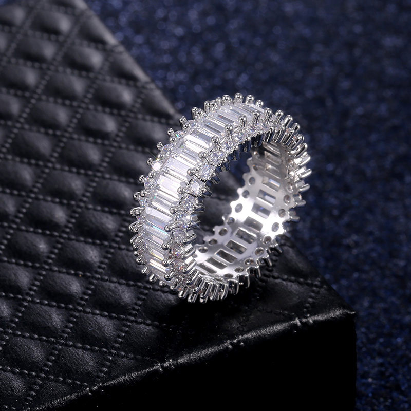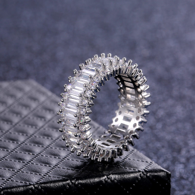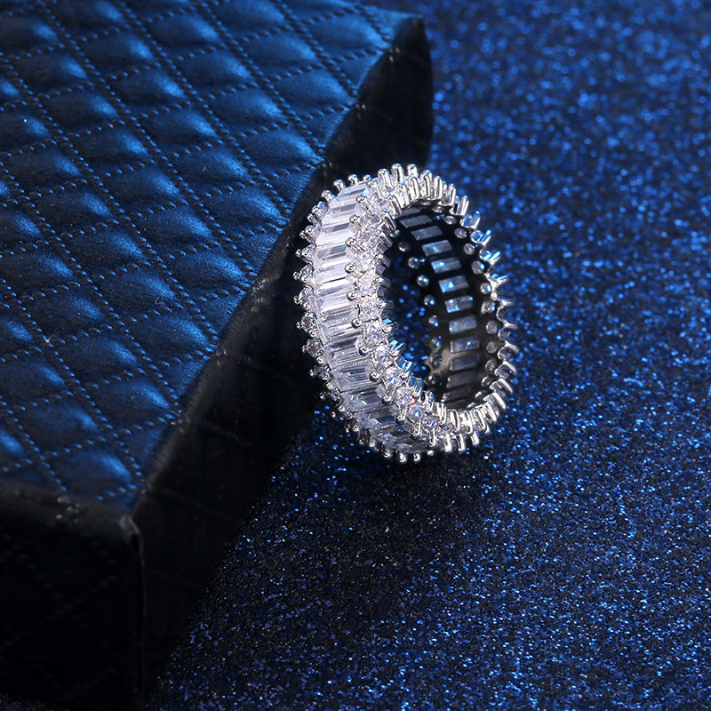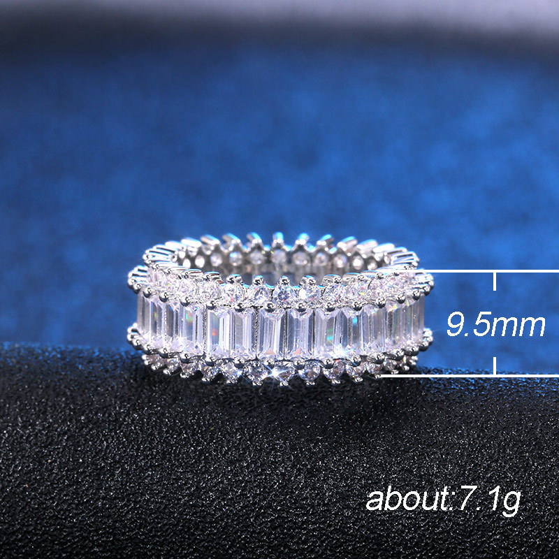 Hot selling new European and American fashion rectangular zircon diamond ring trendy exaggerated full circle couple jewelry
