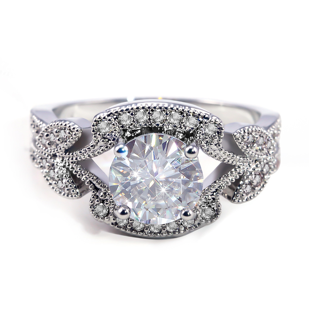 Micro-inlaid celebrity style classic all-match popular ring six-claw zircon wedding ring European and American style light luxury ring