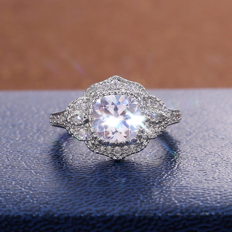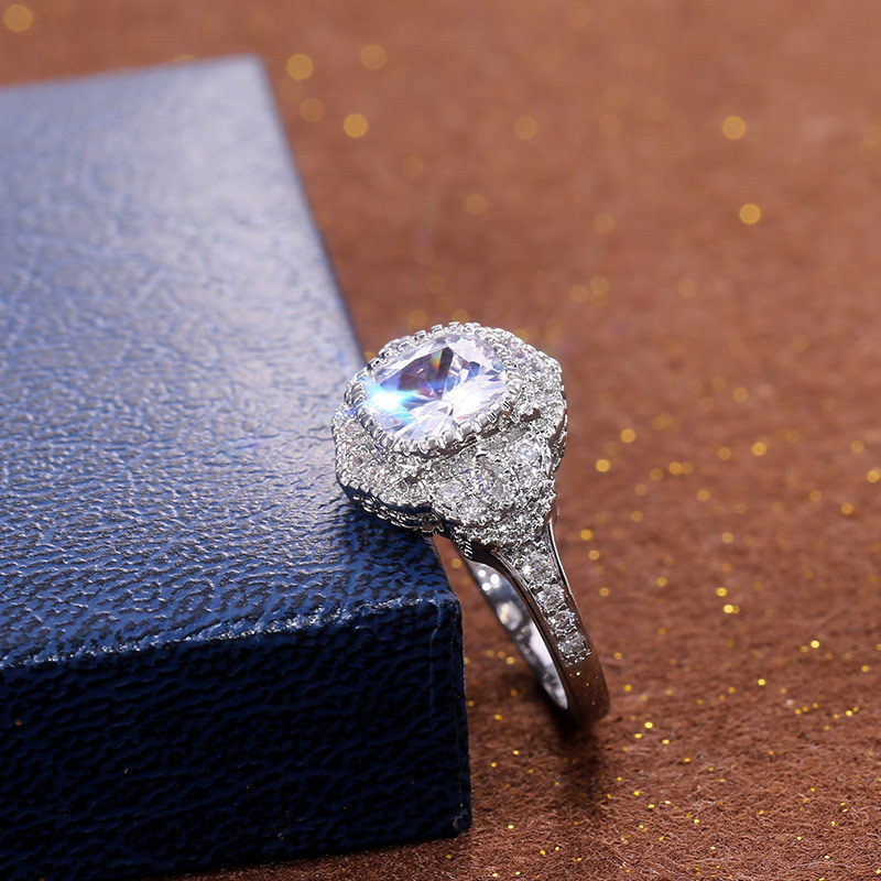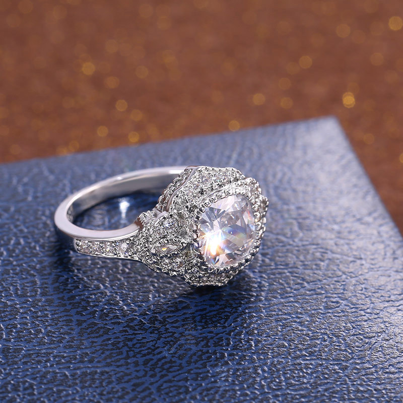 Micro-inlaid celebrity style classic all-match popular ring six-claw zircon wedding ring European and American style light luxury ring