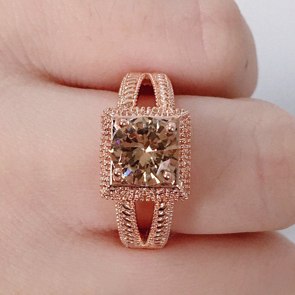 Hot selling new princess square ring European and American hot style inlaid zircon women's jewelry engagement proposal ring