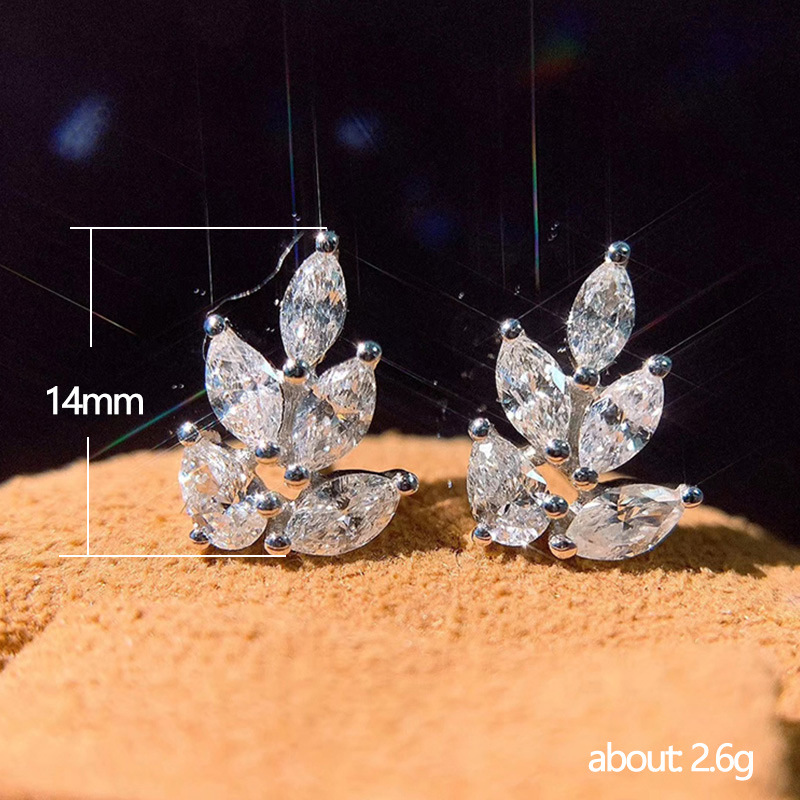 Hot selling new exquisite leaf inlaid AAA zircon earrings for women, marquise-shaped earrings, factory wholesale