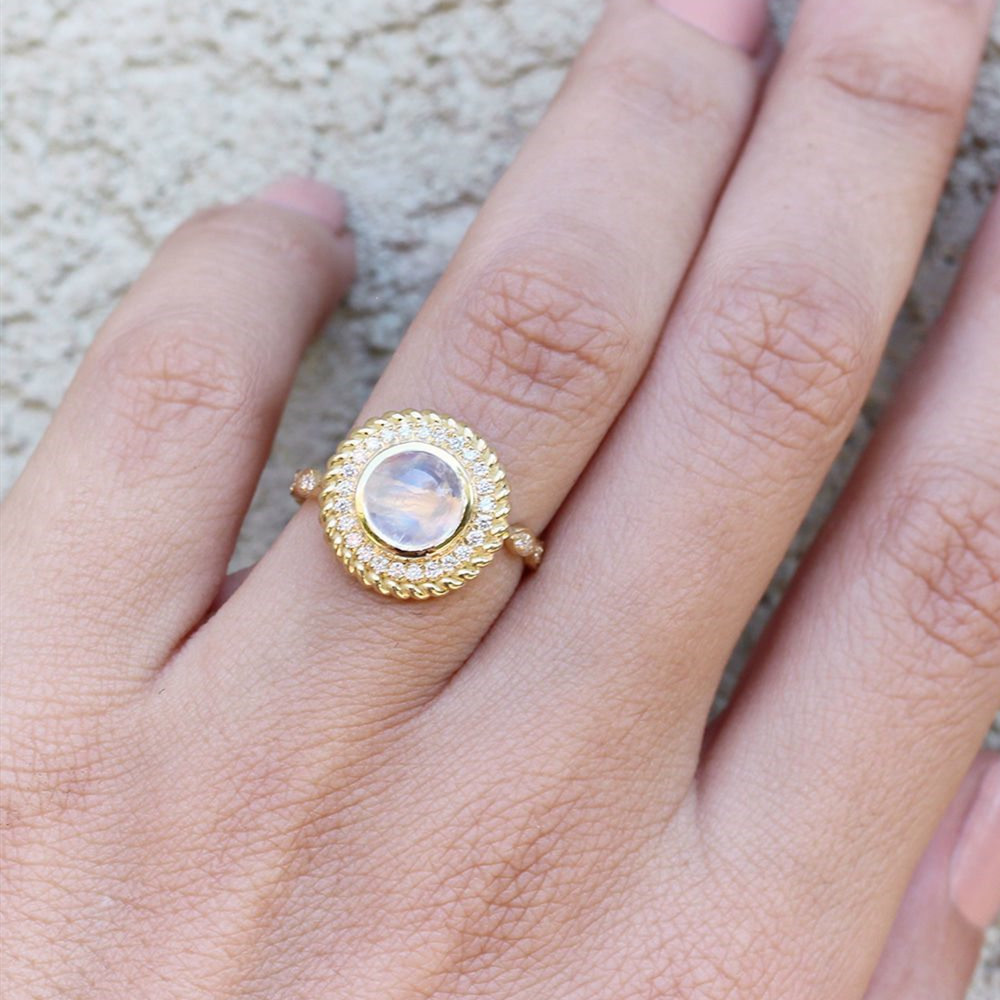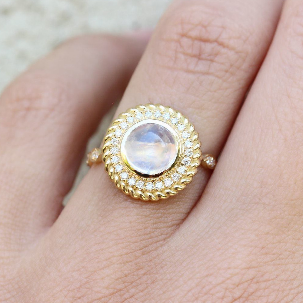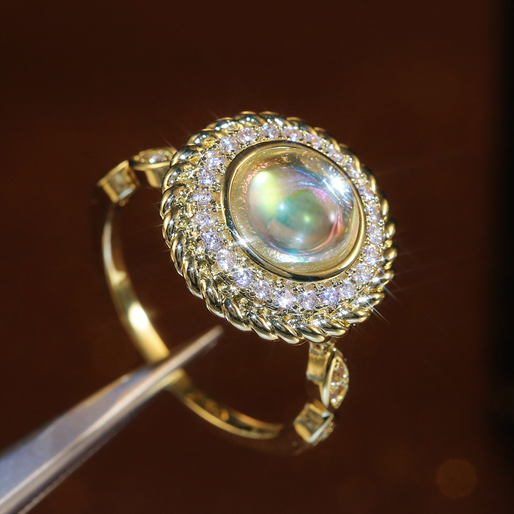 Hot selling new exquisite moonstone women's ring gold retro style micro-inlaid jewelry