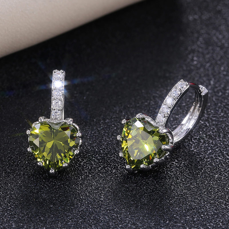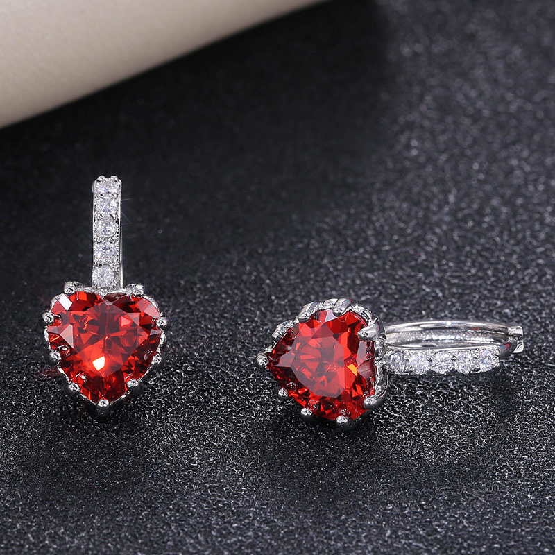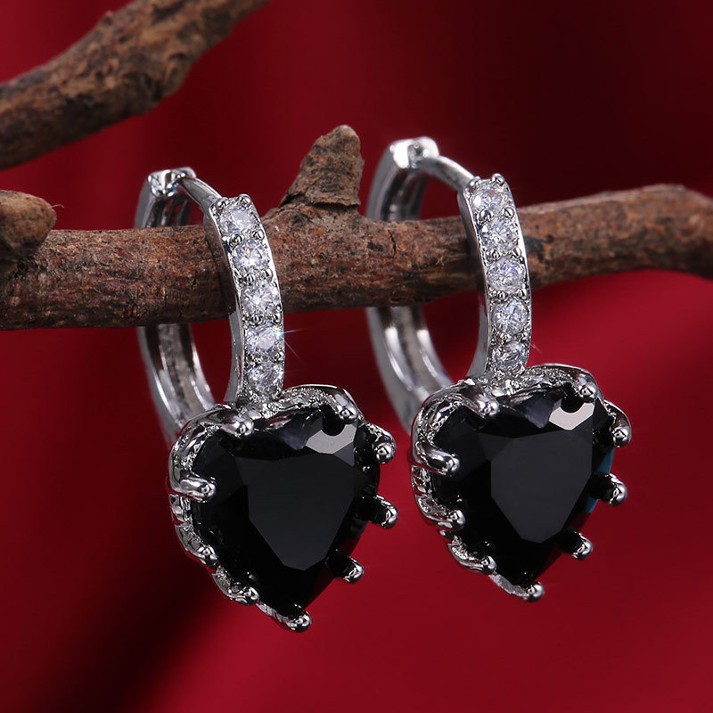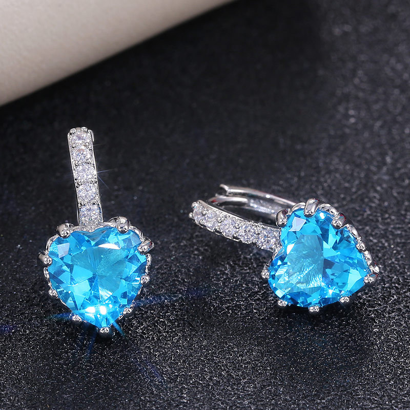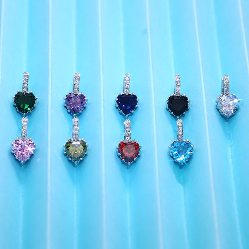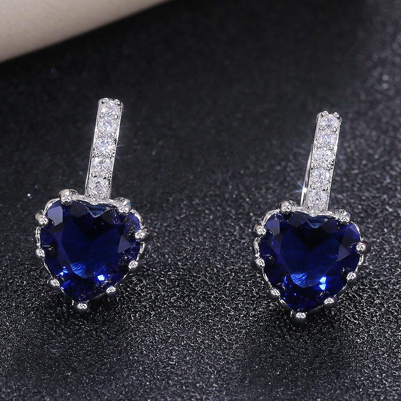 Hot selling new fashion multi-color zircon heart earrings temperament peach heart crystal earrings jewelry