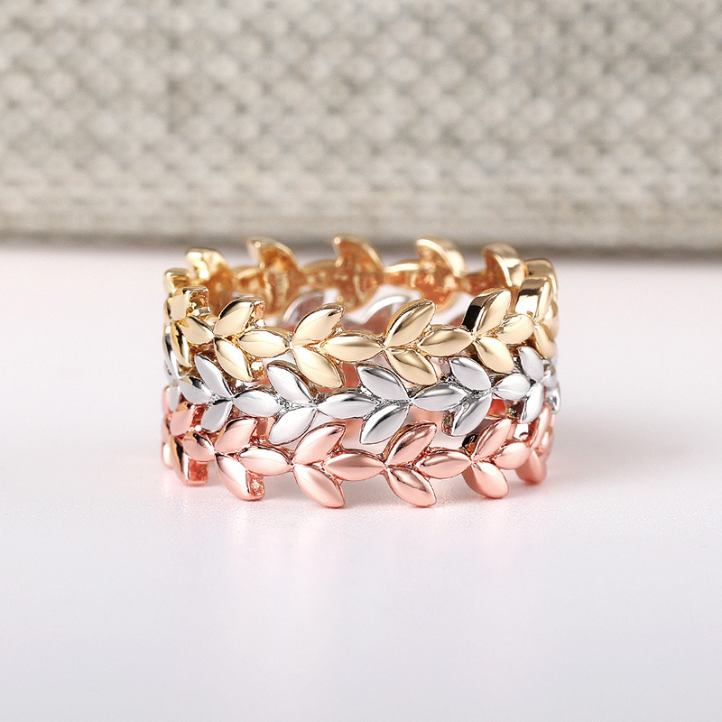 Hot selling new fashion rose gold vine leaf ring network celebrity stacking ring