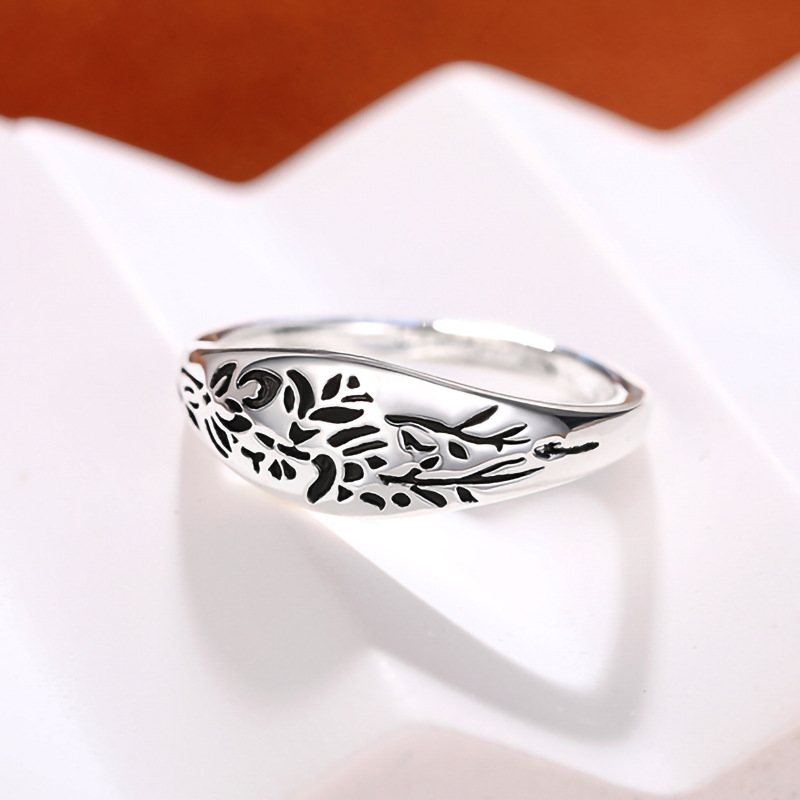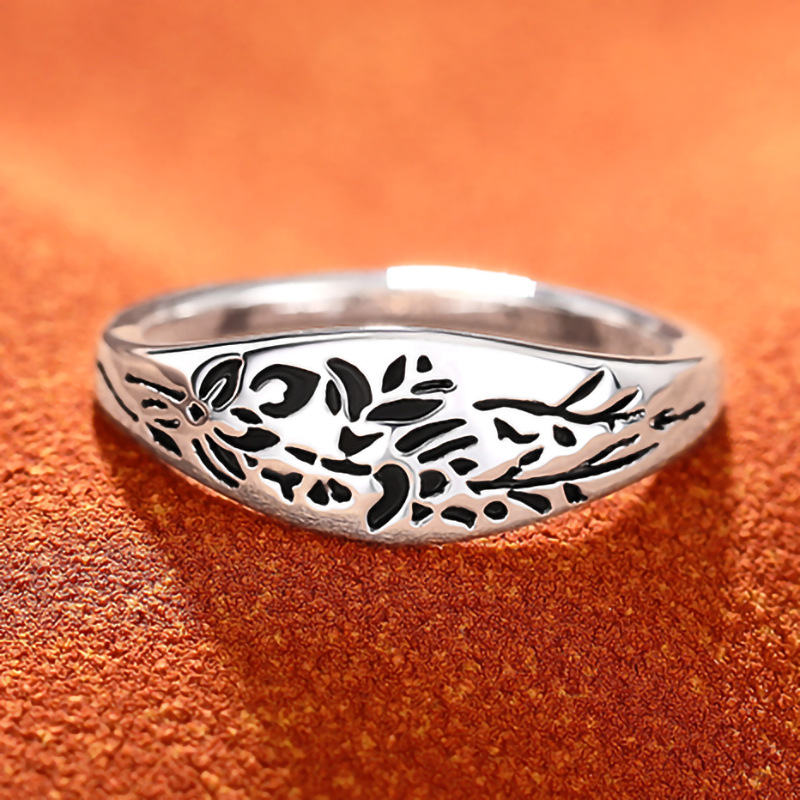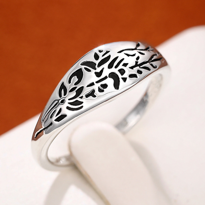 Classic retro engraved auspicious flower ring classical wide version Miao ring Yunnan ethnic style men and women's jewelry