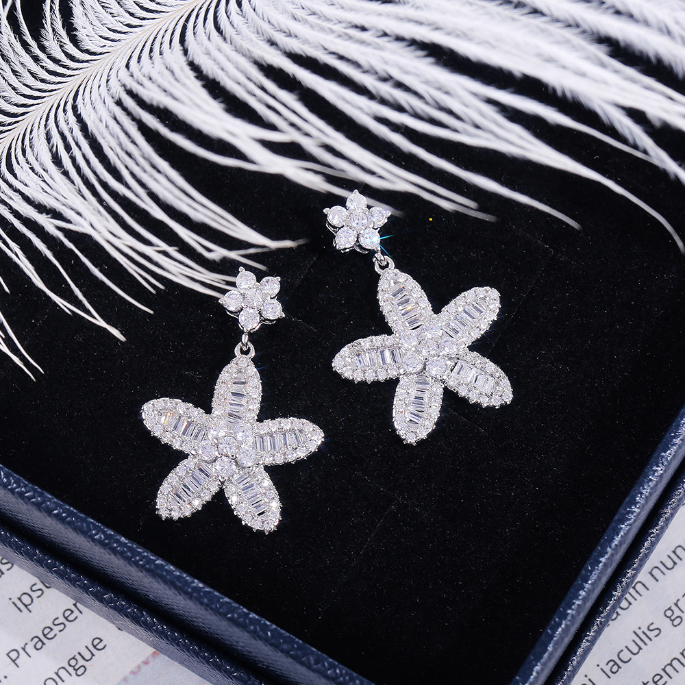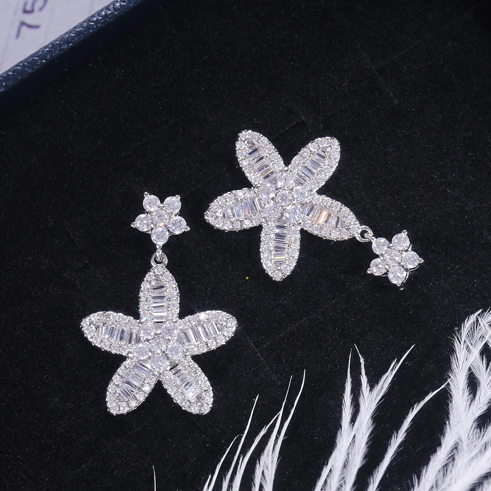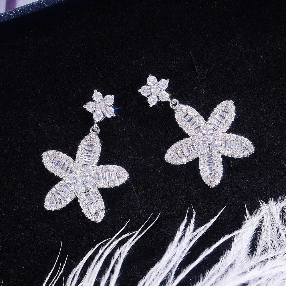 Hot selling new Korean sweet temperament girls full zircon flower earrings earrings high-end jewelry