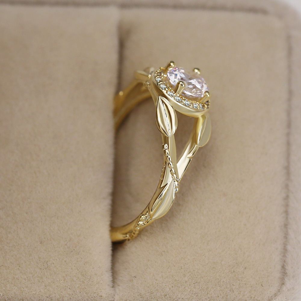 Hot selling new lucky flower vine leaf inlaid zircon ring European and American 14k gold plated ring hand jewelry