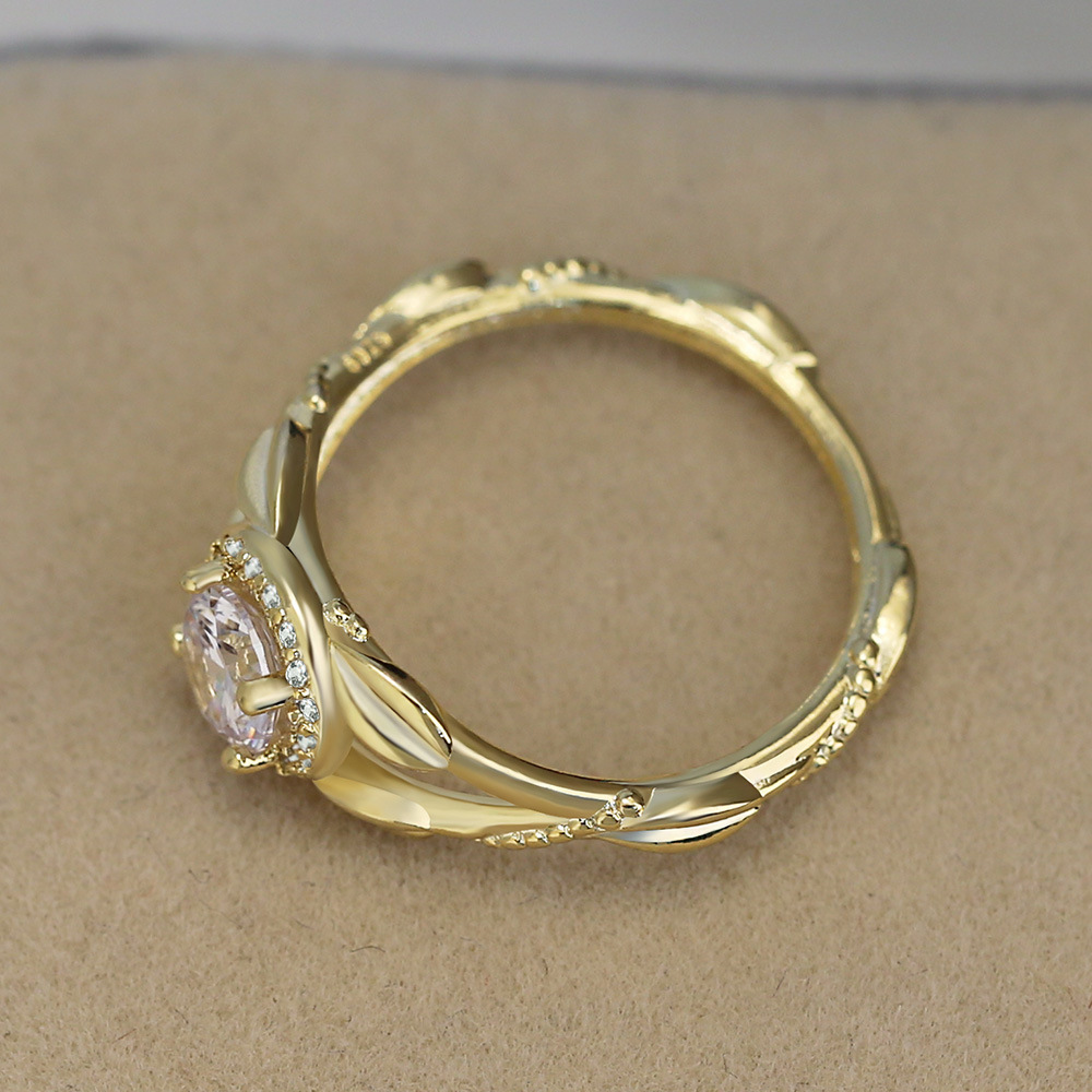 New best-selling super flash ring tree branch bud four-claw inlaid ring light luxury wedding ring for girlfriend