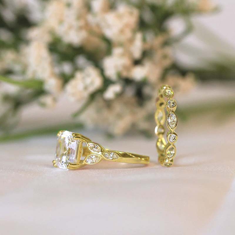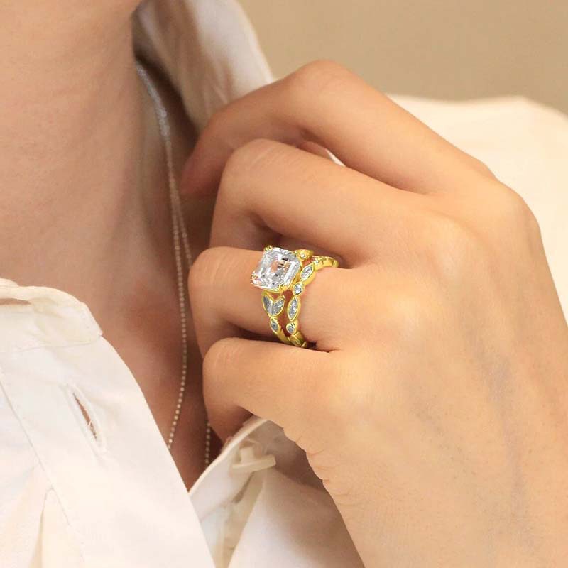 Hot selling new luxury couple rings, floral square diamond princess rings, European and American fashion engagement jewelry