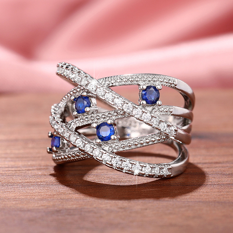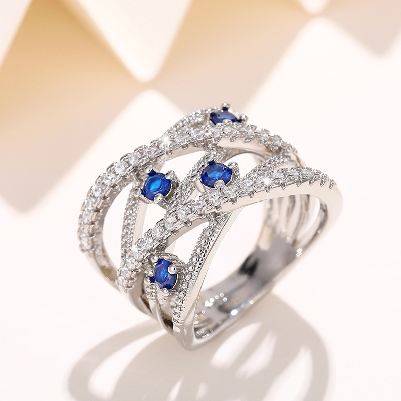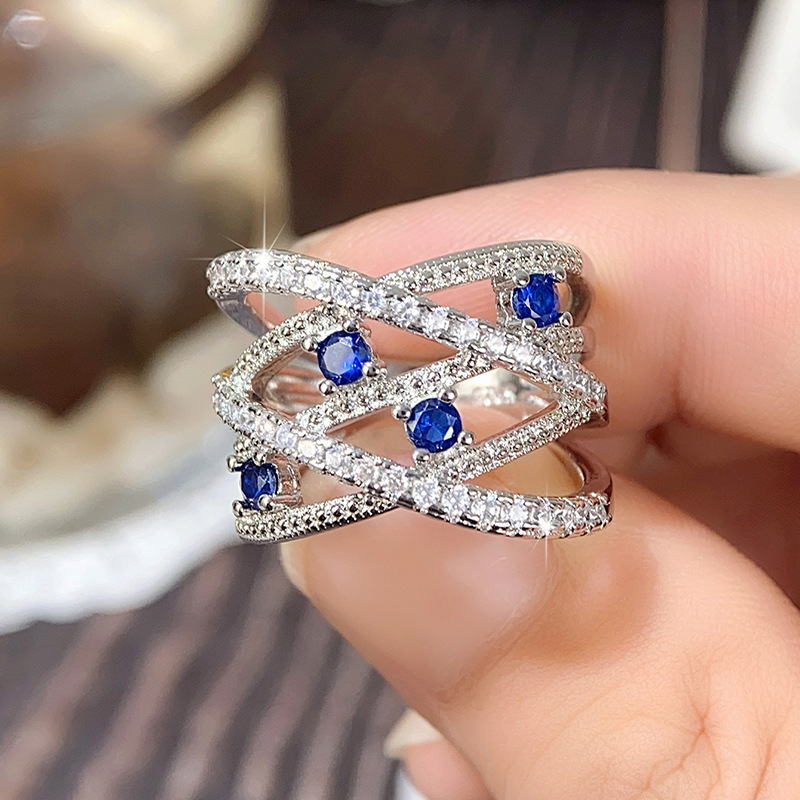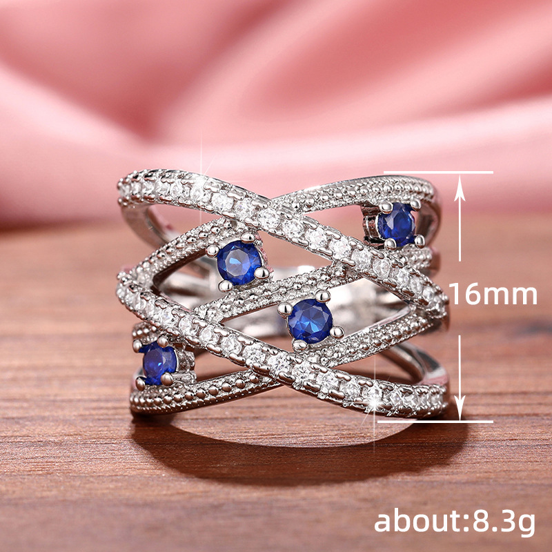 European and American luxury design ring fashionable temperament horse eye zircon ring multi-layer hollow design index finger ring