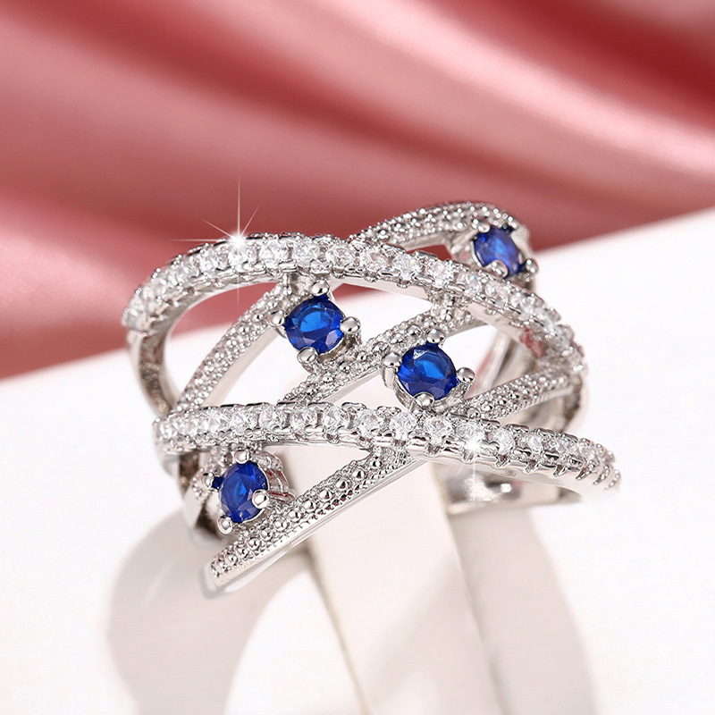 New zircon ring hollow cross four claws fashion design proposal wedding ring birthday gift ring
