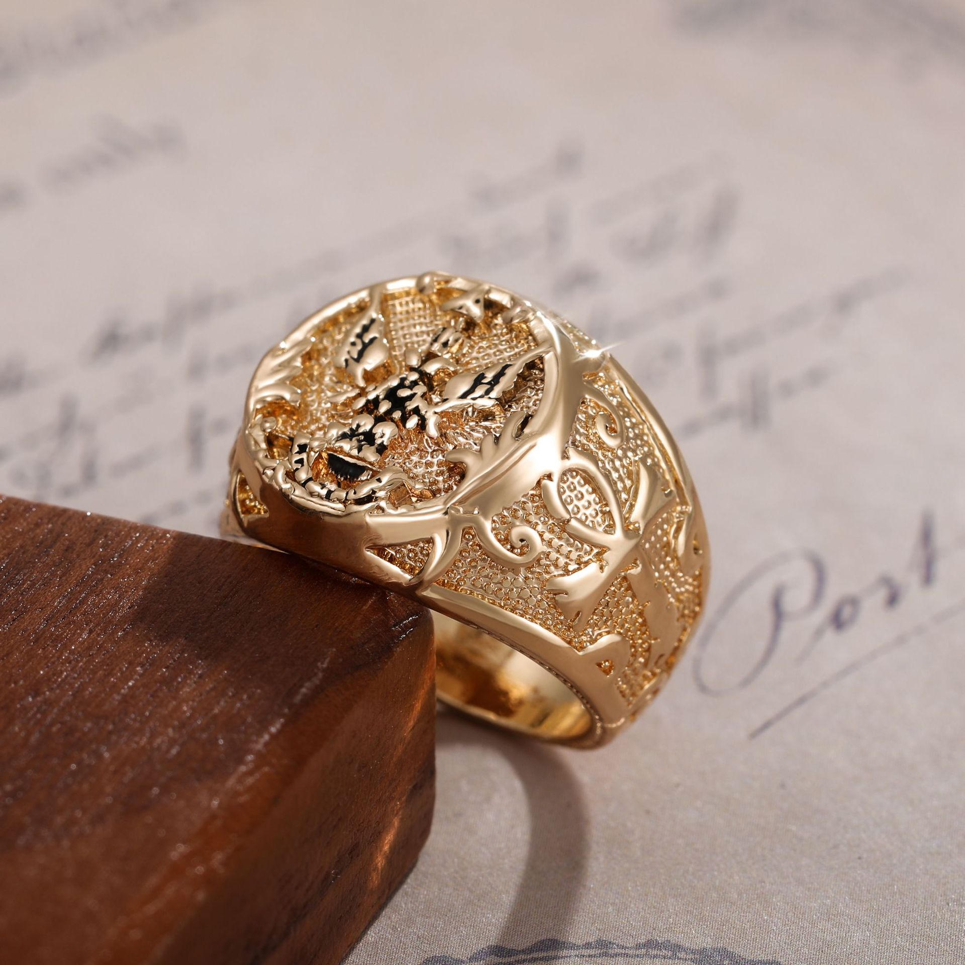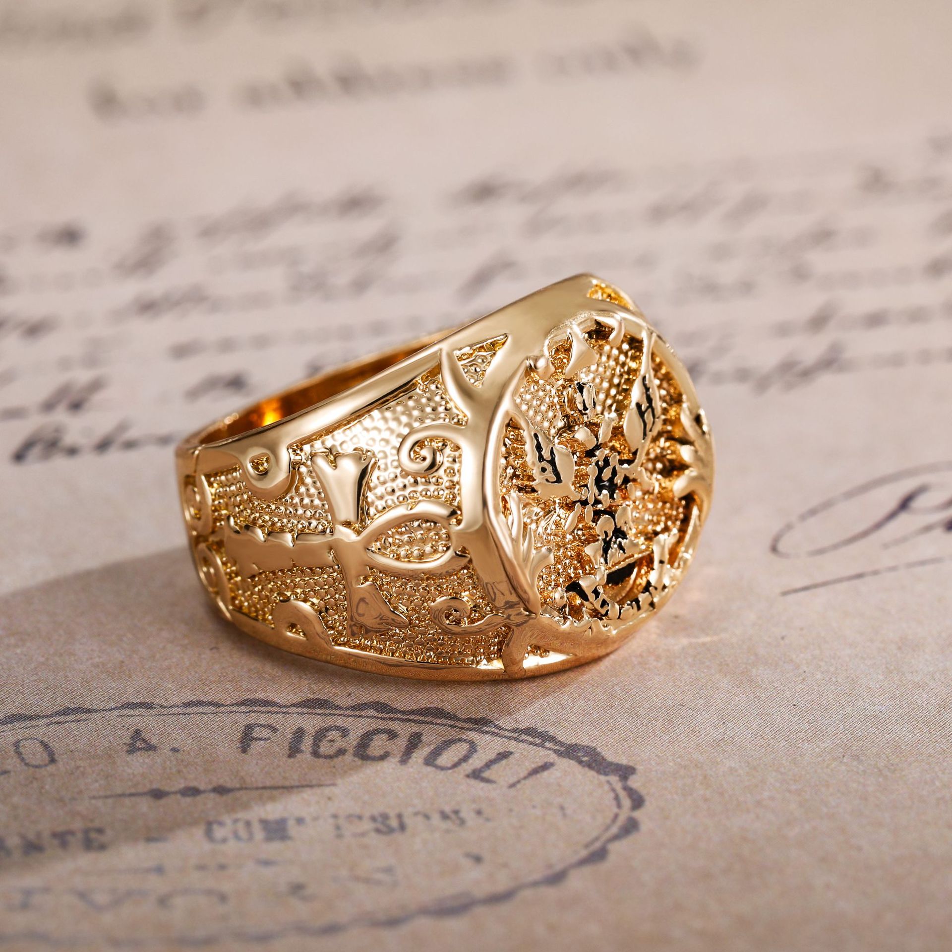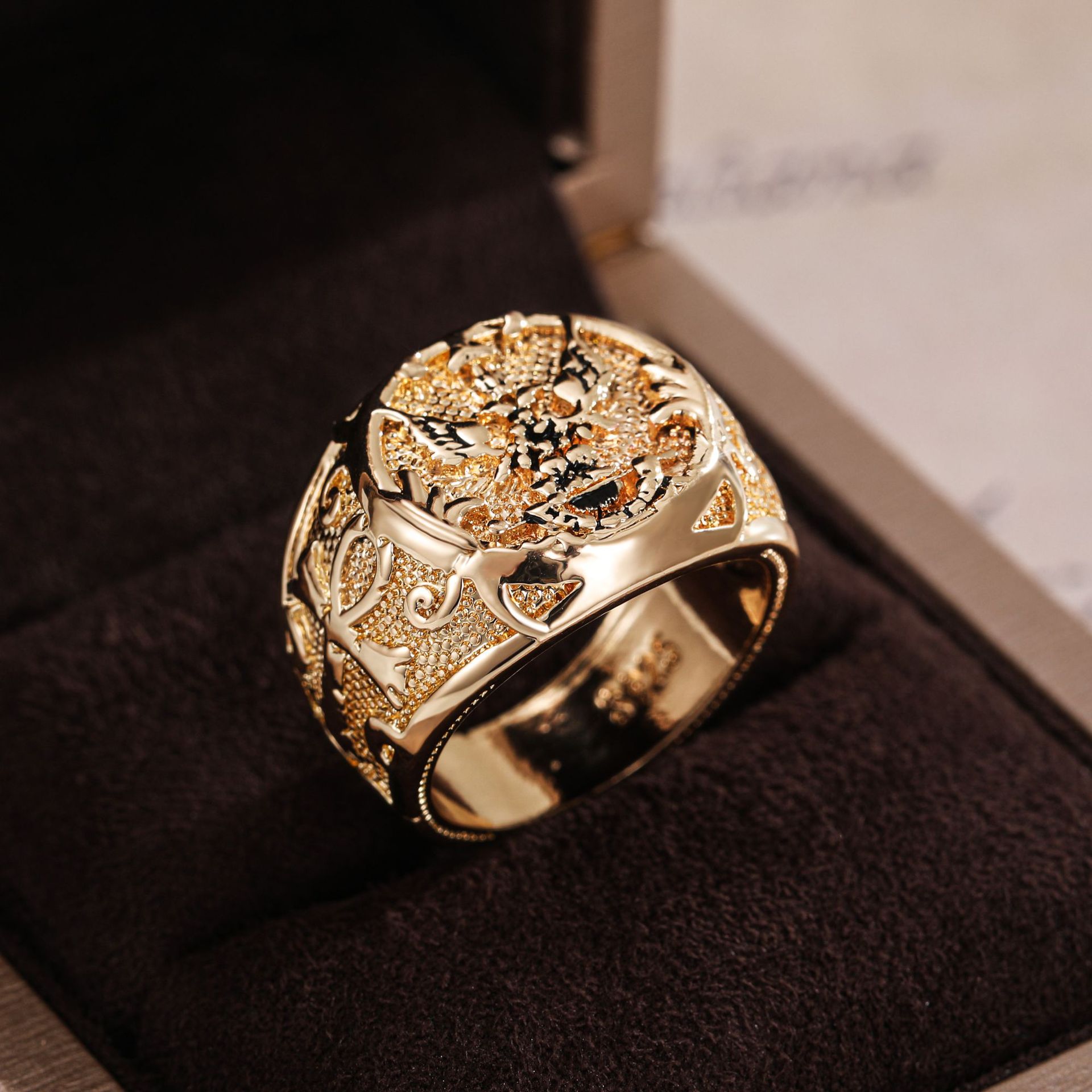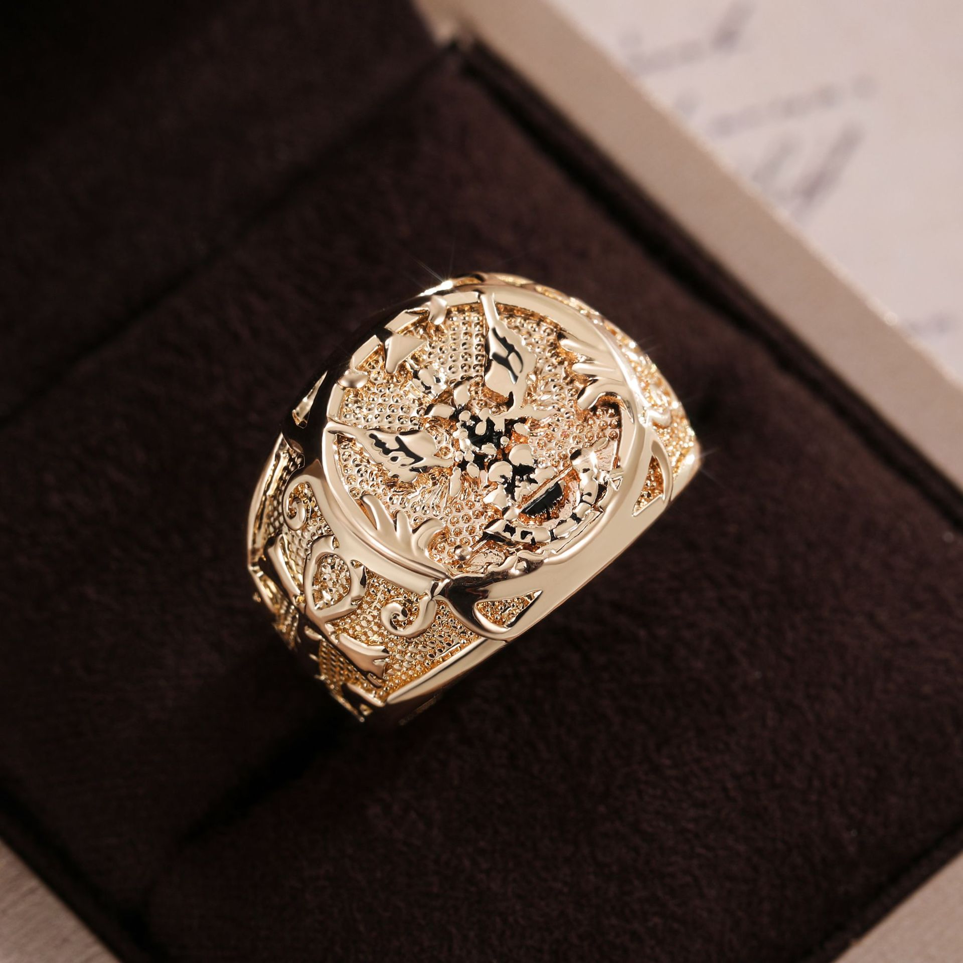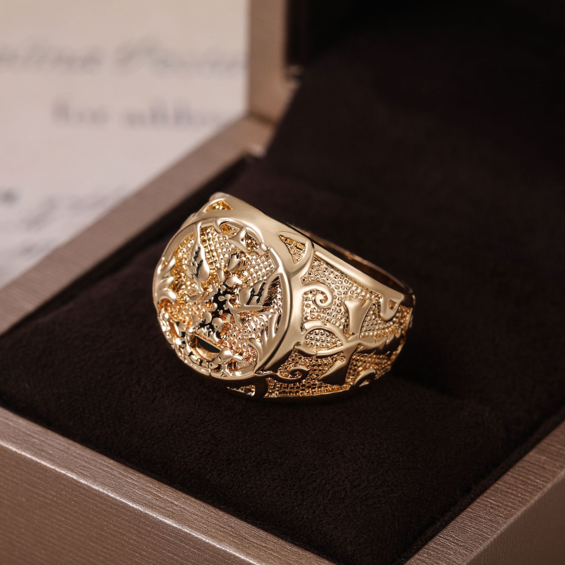 Classic retro engraved auspicious flower ring classical wide version Miao ring Yunnan ethnic style men and women's jewelry