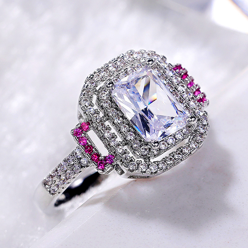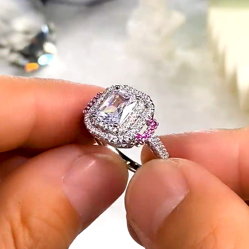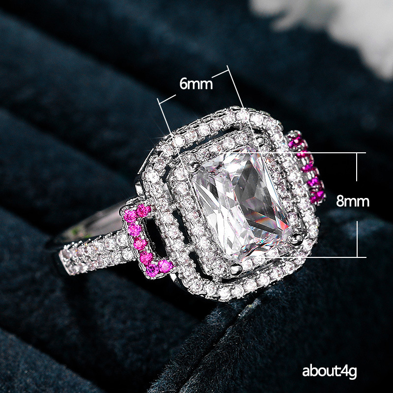 Hot selling new pink diamond square princess ring female European and American fashion engagement proposal diamond ring