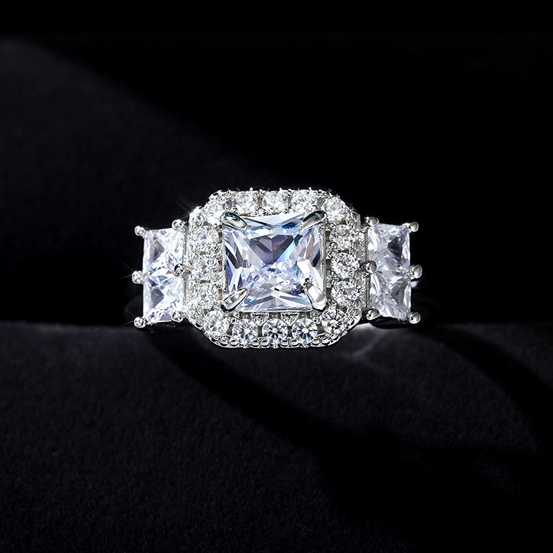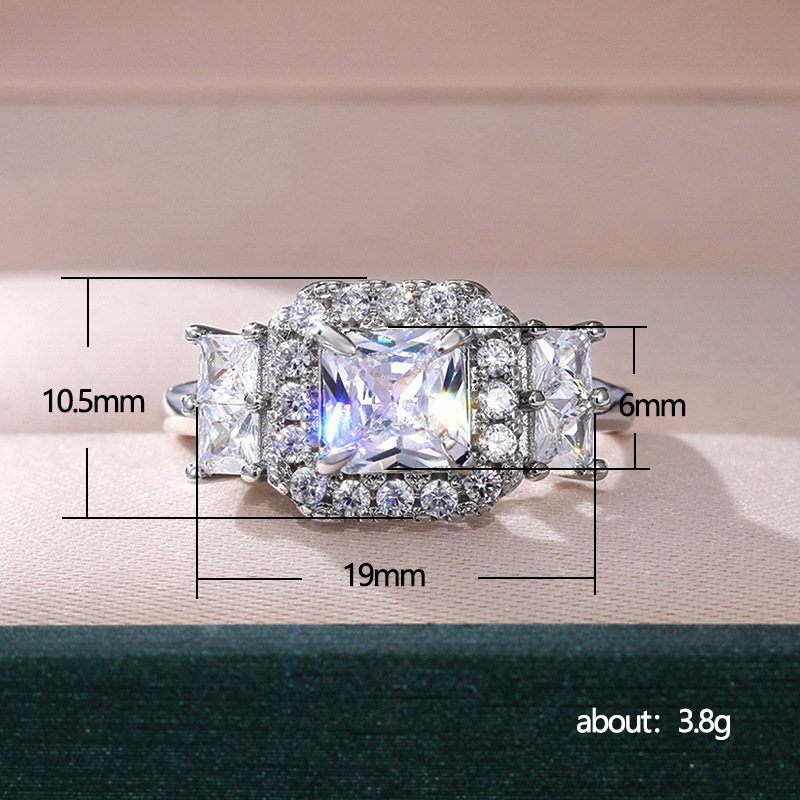 Hot selling new princess square ring European and American hot style inlaid zircon women's jewelry engagement proposal ring