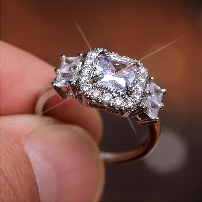 Hot selling new princess square imitation zircon ring wedding proposal carat diamond ring wedding ring female