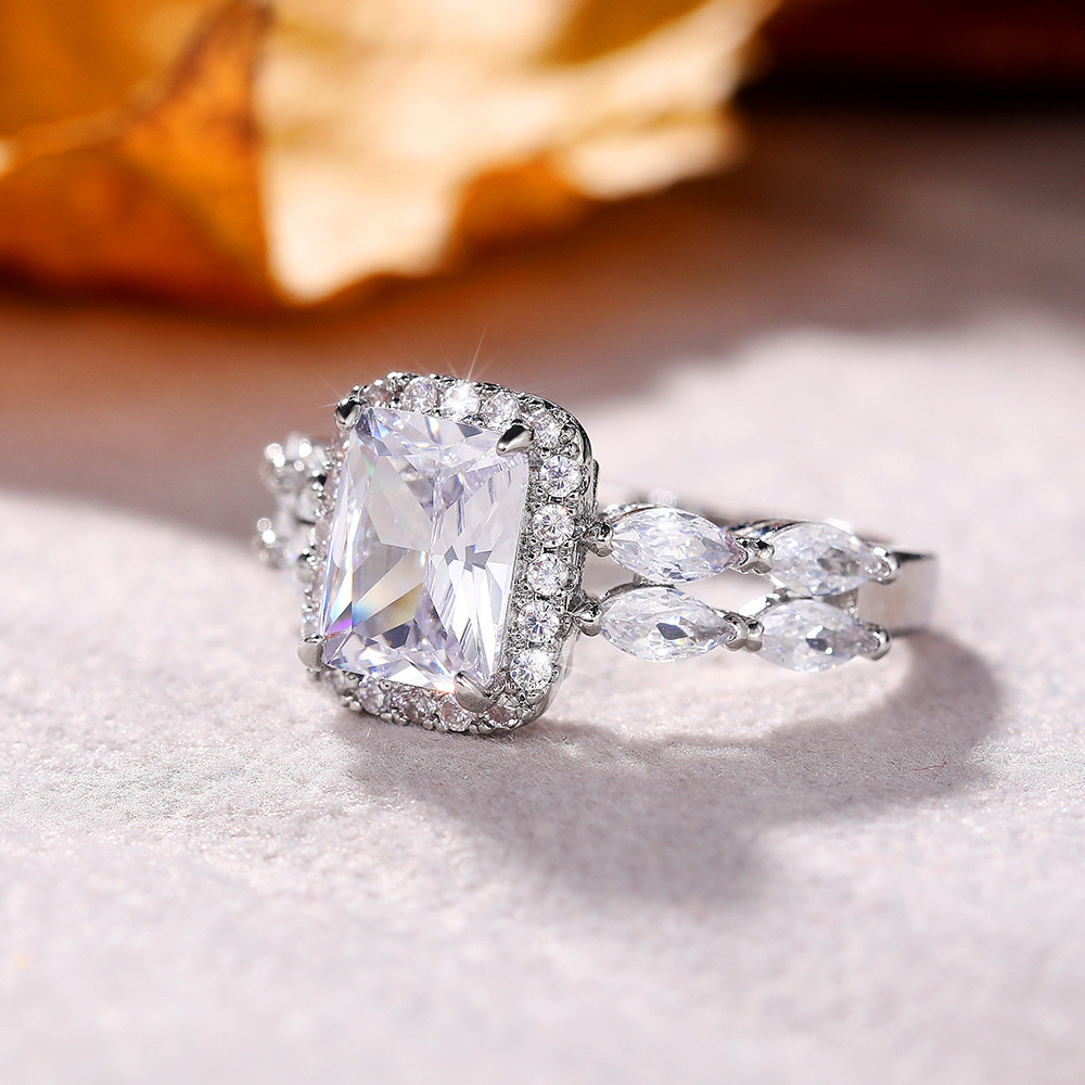 Hot selling new princess square imitation zircon ring wedding proposal carat special shaped diamond female wedding ring