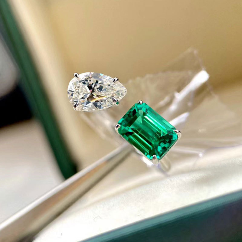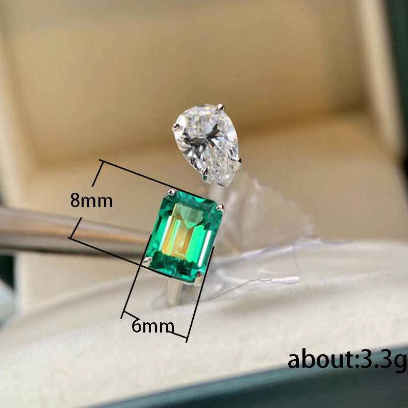 Hot selling new product of Internet celebrity live broadcast, simulated emerald tourmaline princess square temperament open ring for women