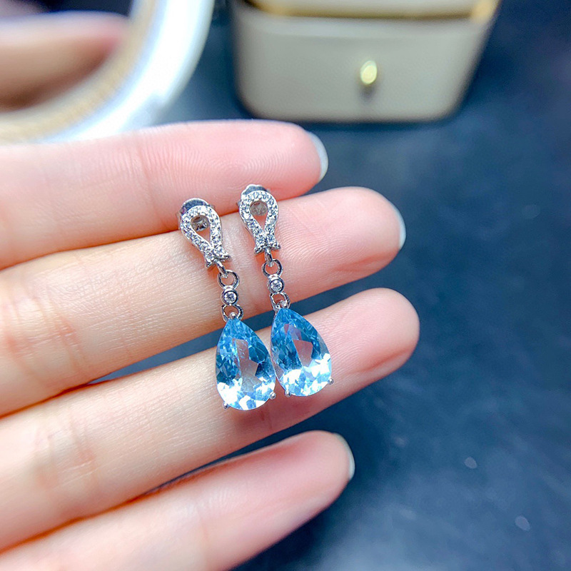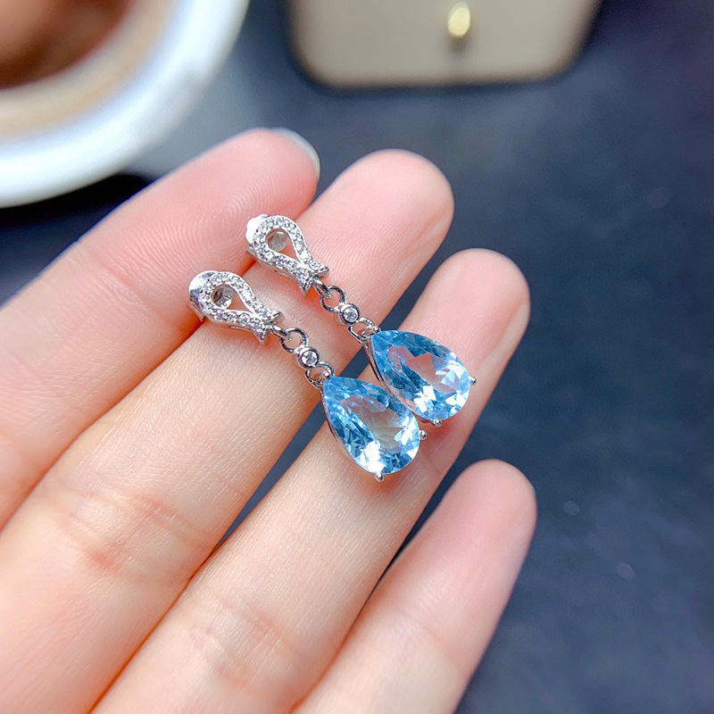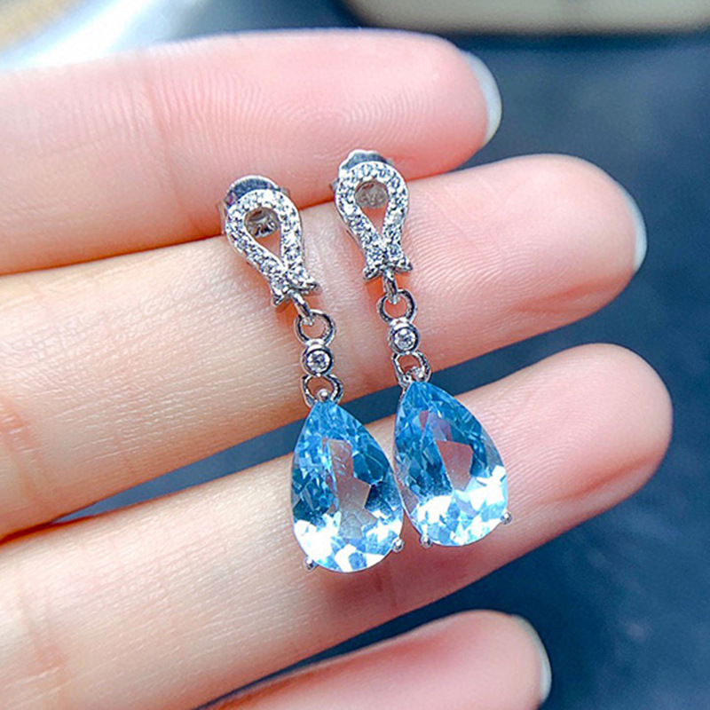 Hot selling new products on live streaming by internet celebrities, simulated sea blue zircon long earrings for women, water drop pear-shaped temperament earrings