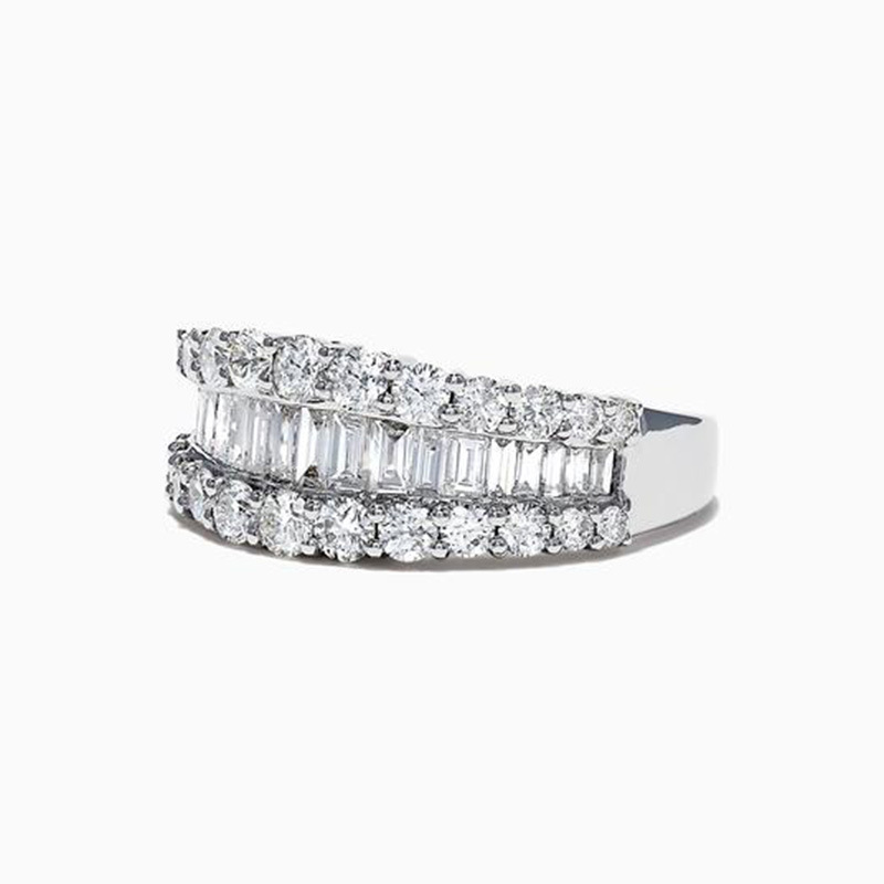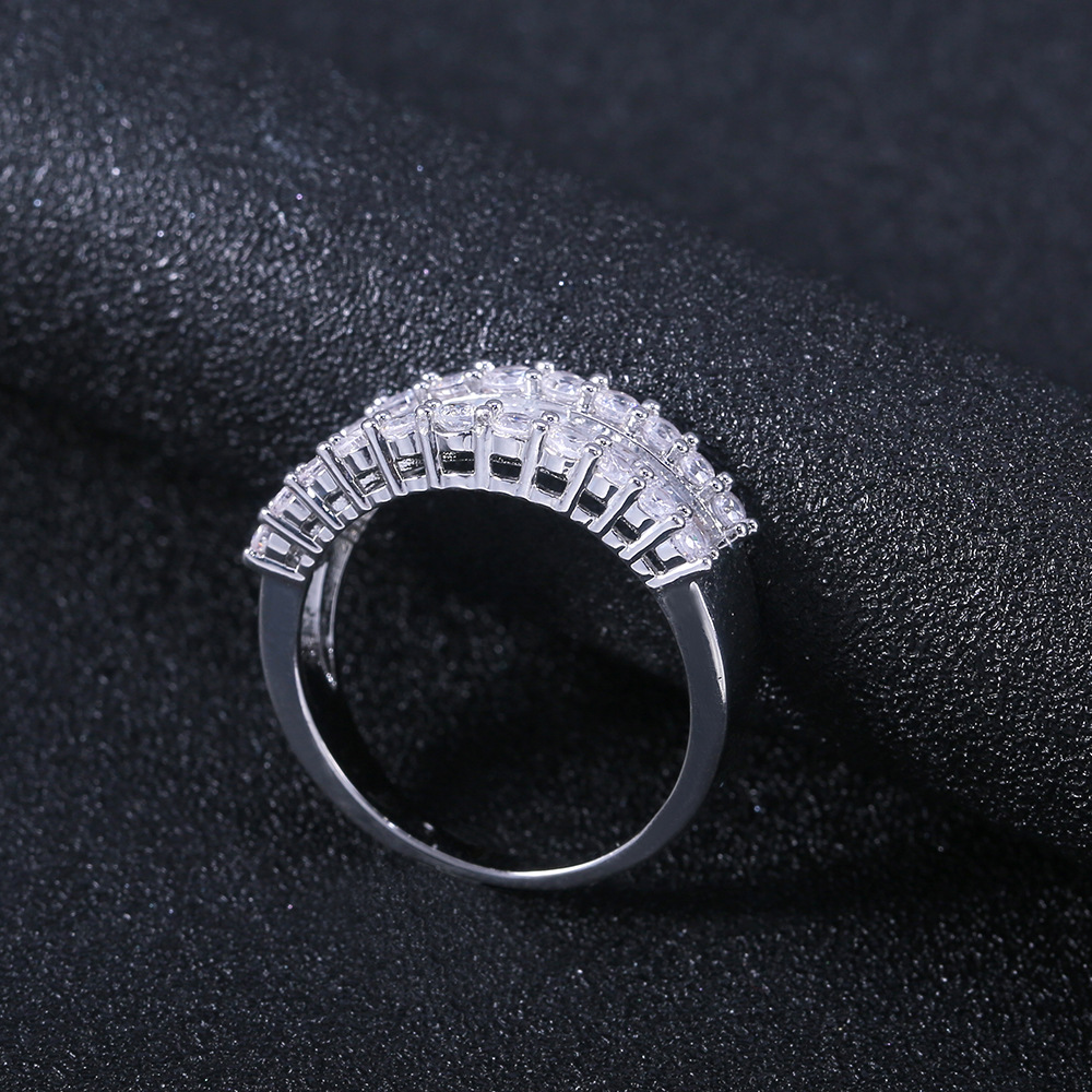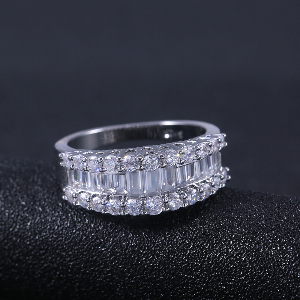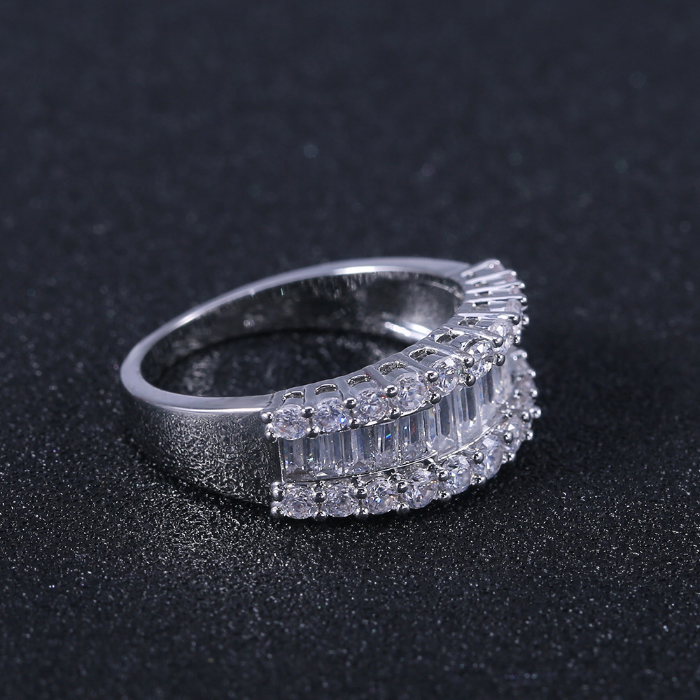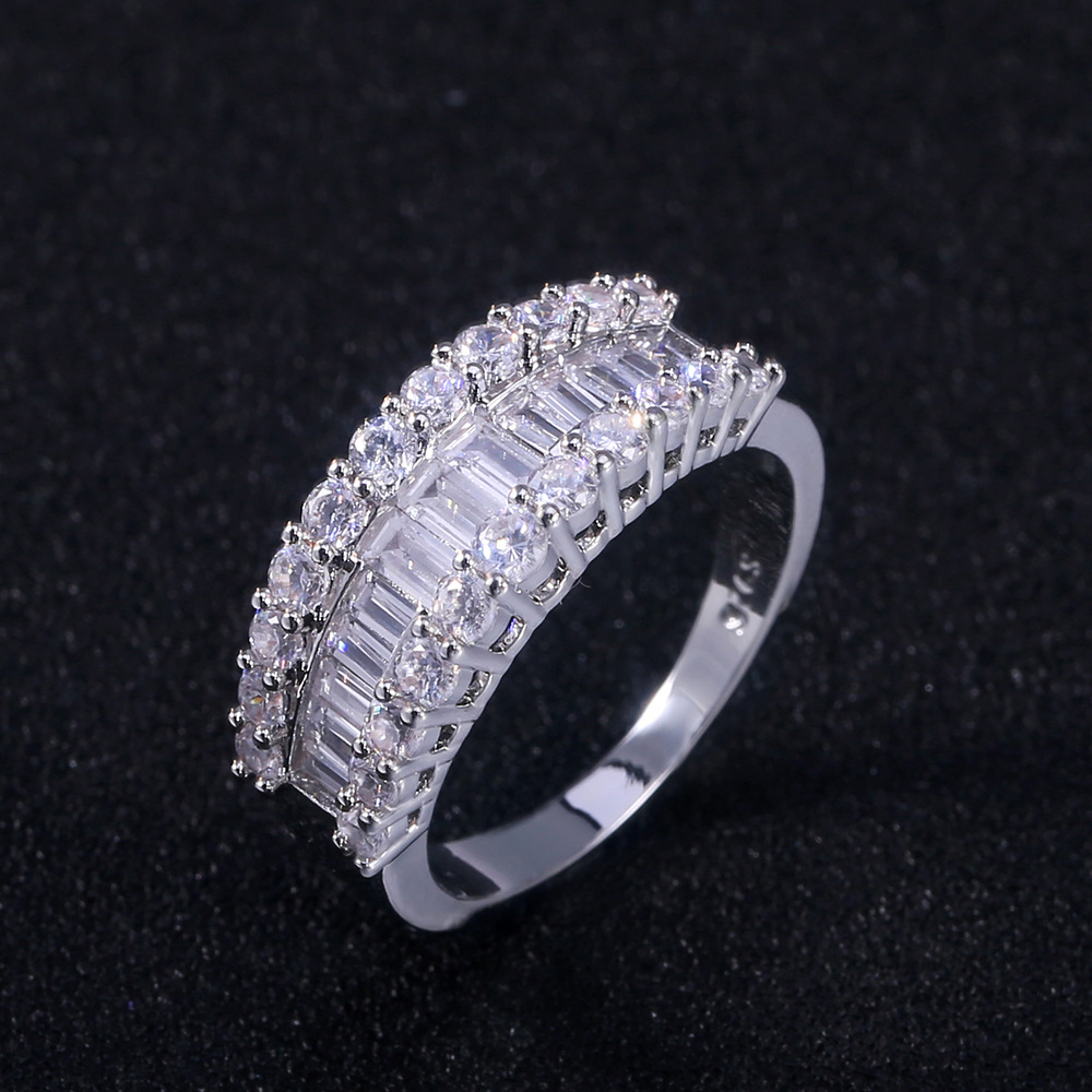 Hot selling new ring copper plated white gold ladder diamond ring luxury full diamond T square zircon women's ring