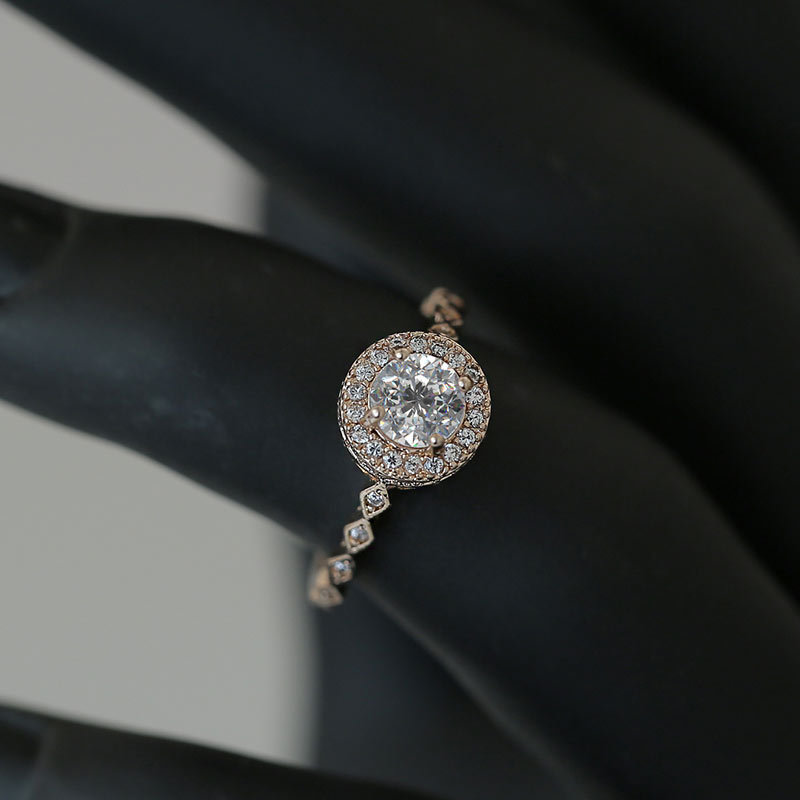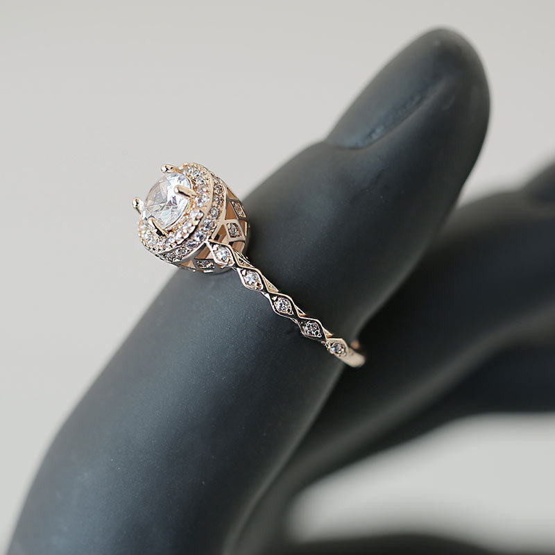 Micro-inlaid celebrity style classic all-match popular ring six-claw zircon wedding ring European and American style light luxury ring